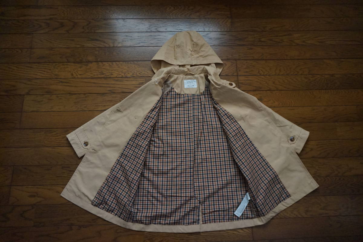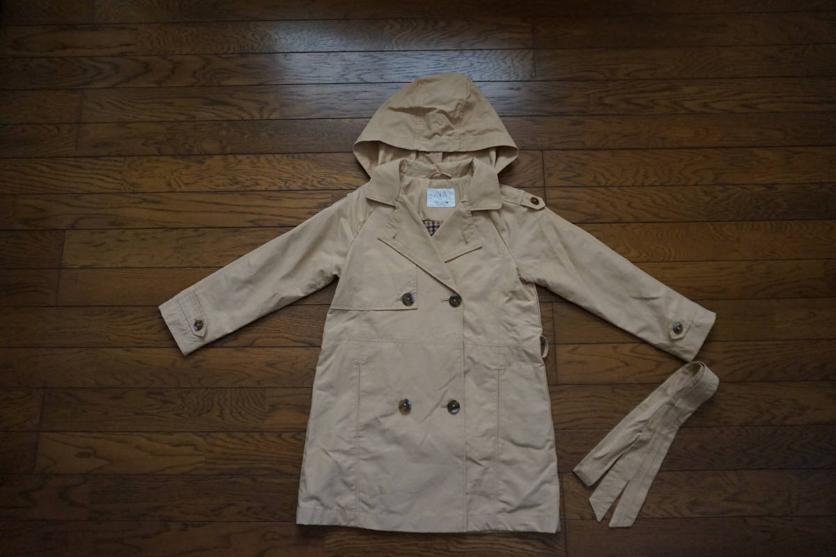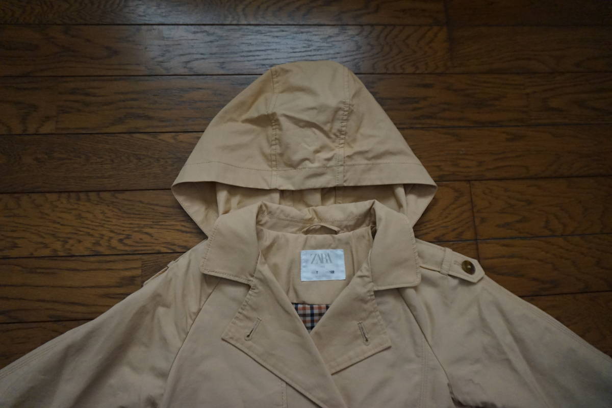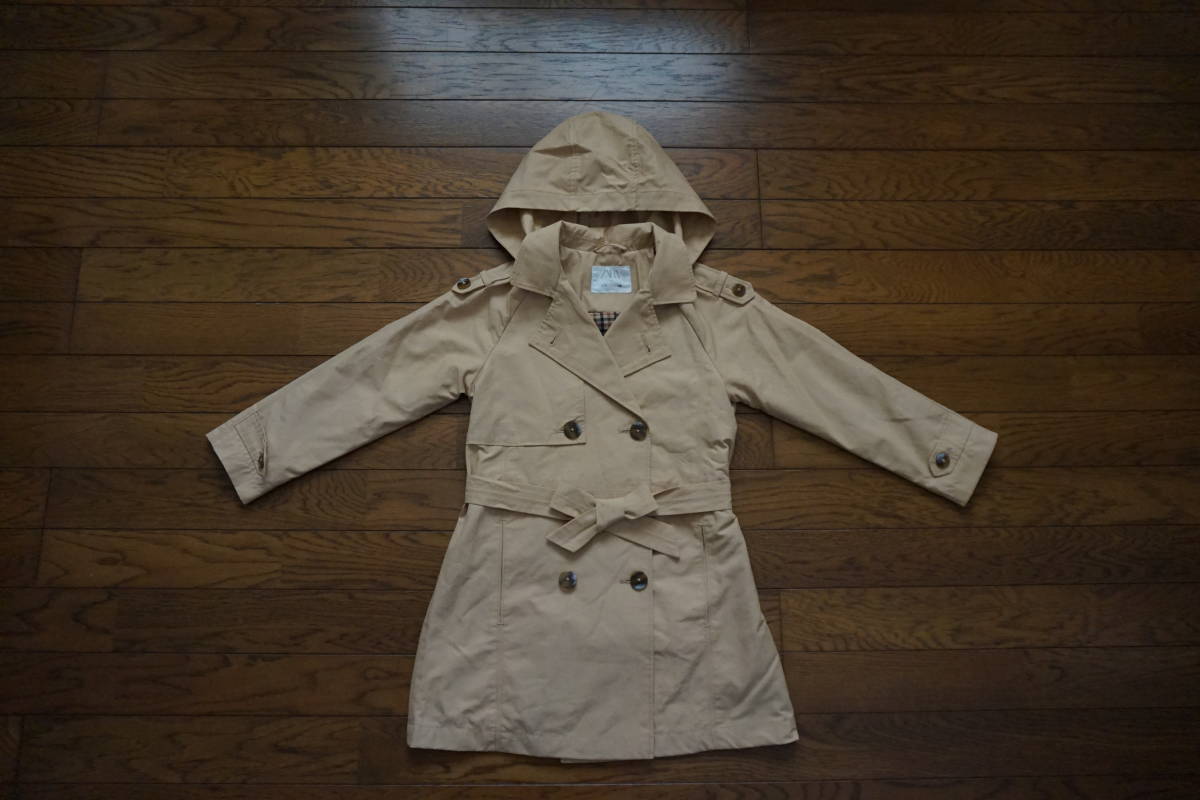*◇ ZARA KIDS ザラ ◇ フード付 トレンチコート ◇ size 7 / 122cm です。   フードの取り外しはできません。   畳ジワ・毛羽立ちが多少あります。