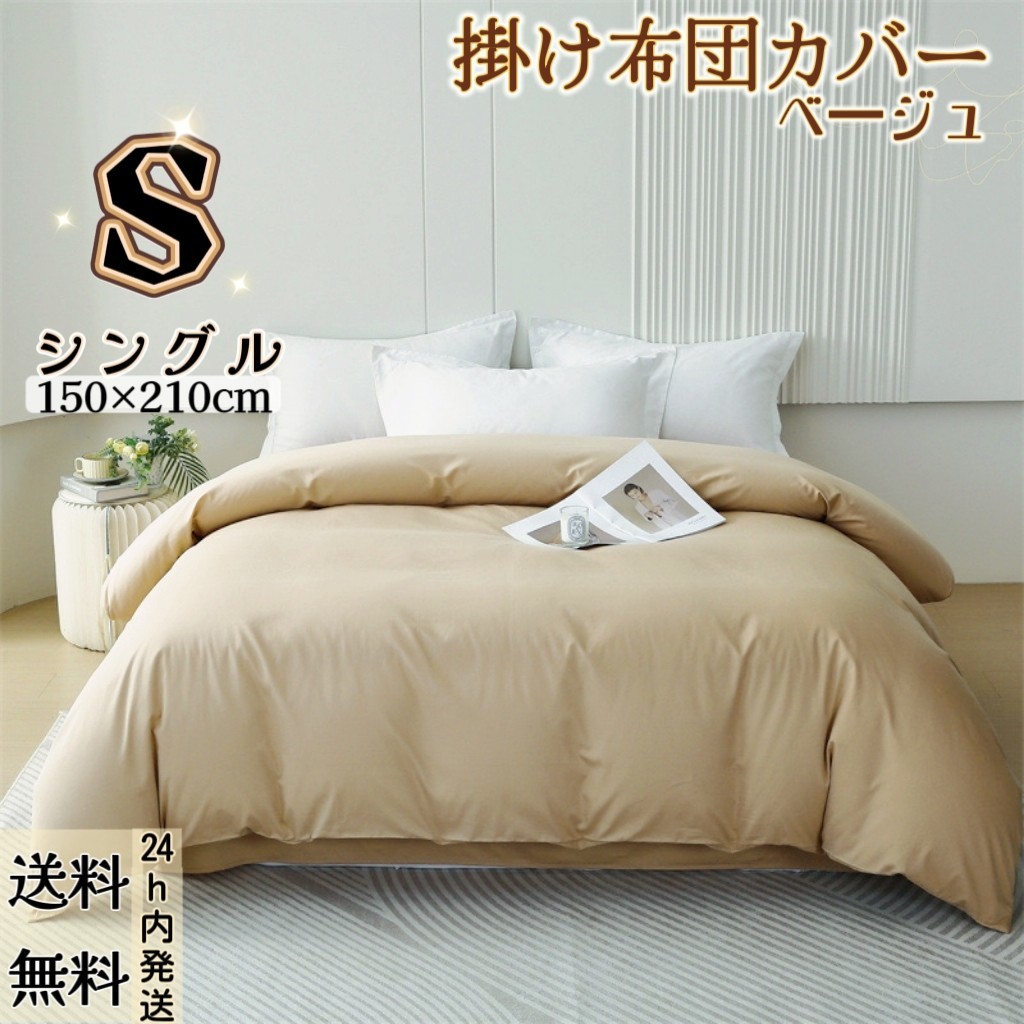 【単品売り】布団カバー 掛け布団カバー ふとんカバー 肌触りの良い 寝具カバー 洋式・和式兼用 四季兼用 通気 速乾 掛ふとんカバー 柔らかい 丸洗い可能(シングル・150*210CM ベージュ)