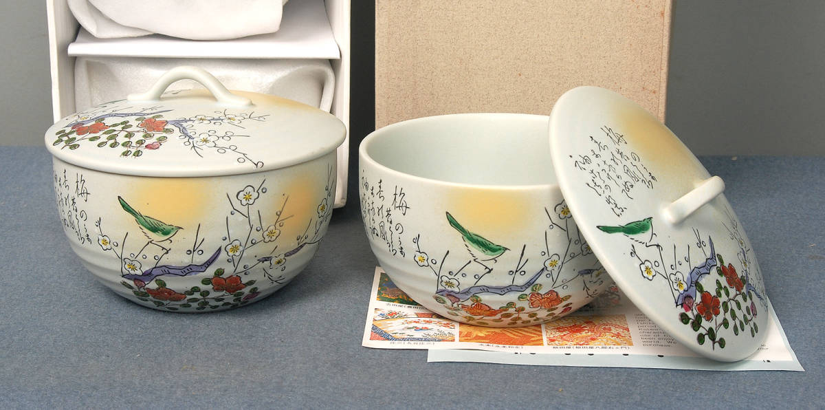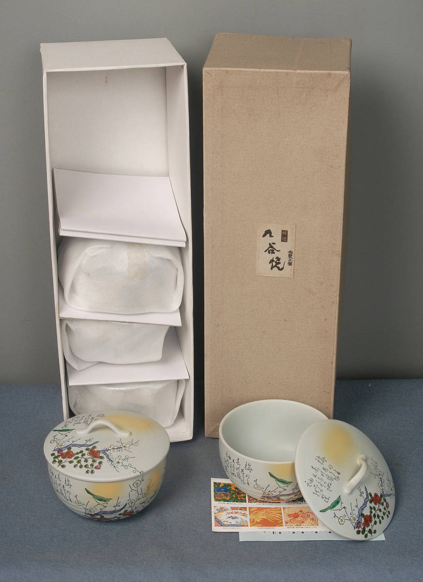 | ご覧頂きありがとうございます。 | 九谷焼 栄利のフタ付きの4号 小鉢揃「梅に鶯」5客セット |