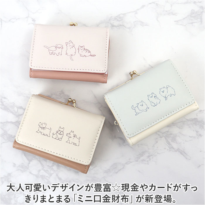 | 商品説明 | ・・大人可愛いデザインが豊富☆現金やカードがすっきりまとまる「ミニ口金財布」が新登場。 ・【うれしいコンパクトサイズ】 ・ミニマルに収まる三つ折り仕様。ミニバッグやアウターのポケットにすっぽり! ・【ガバッと開くがま口型小銭入れ】 ・独立型の小銭入れは大きく開いて中身が見やすく、出し入れもスムーズ◎2スペース&ミニポケット付き。 ・【いつでも開け閉めラクラク】 ・開口部はスナップボタン式で、いつでもサッと開け閉め可能。 ・【お札もカードもひとまとめ】 ・内側はお札や増えがちなカード類を、見やすく仕分けできるつくり。お会計時も手間取らない♪(※カラーによりそれぞれポケット数が異なります。) ・【面倒なお手入れは不要】 ・表面は合皮素材なので、本革のようなお手入れの手間いらず。汚れなどは拭き取るだけでOK。 ・【ほっこり愛らしいアニマルモチーフ】 ・癒やしのアニマルデザイン。プリント柄や立体的なモチーフ付きなど、選ぶのも楽しいラインナップ。 ・【ポケット仕様】 ・外側:小銭入れ(がま口)×1(内側にミニポケット×1) ・内側:お札入れ×1、カードポケット×8 ・《necoco猫のみ》 ・外側:小銭入れ(がま口)×1(内側にミニポケット×1) ・内側:お札入れ×1、カードポケット×7 |