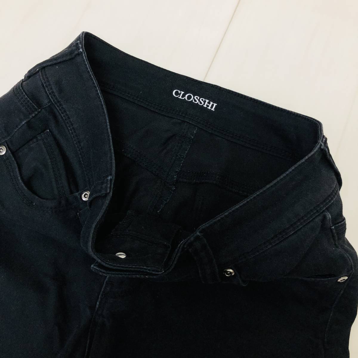 k3176 CLOSSHI クロッシー デニムパンツ 綿混 ストレッチ ポケット サイズ67‐93 黒 無地 レディース シンプル カジュアルデニムコーデ