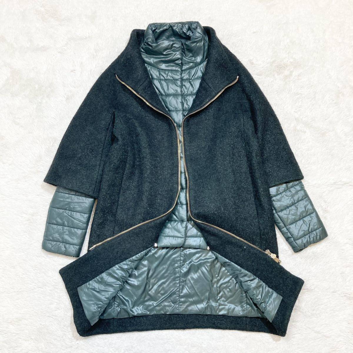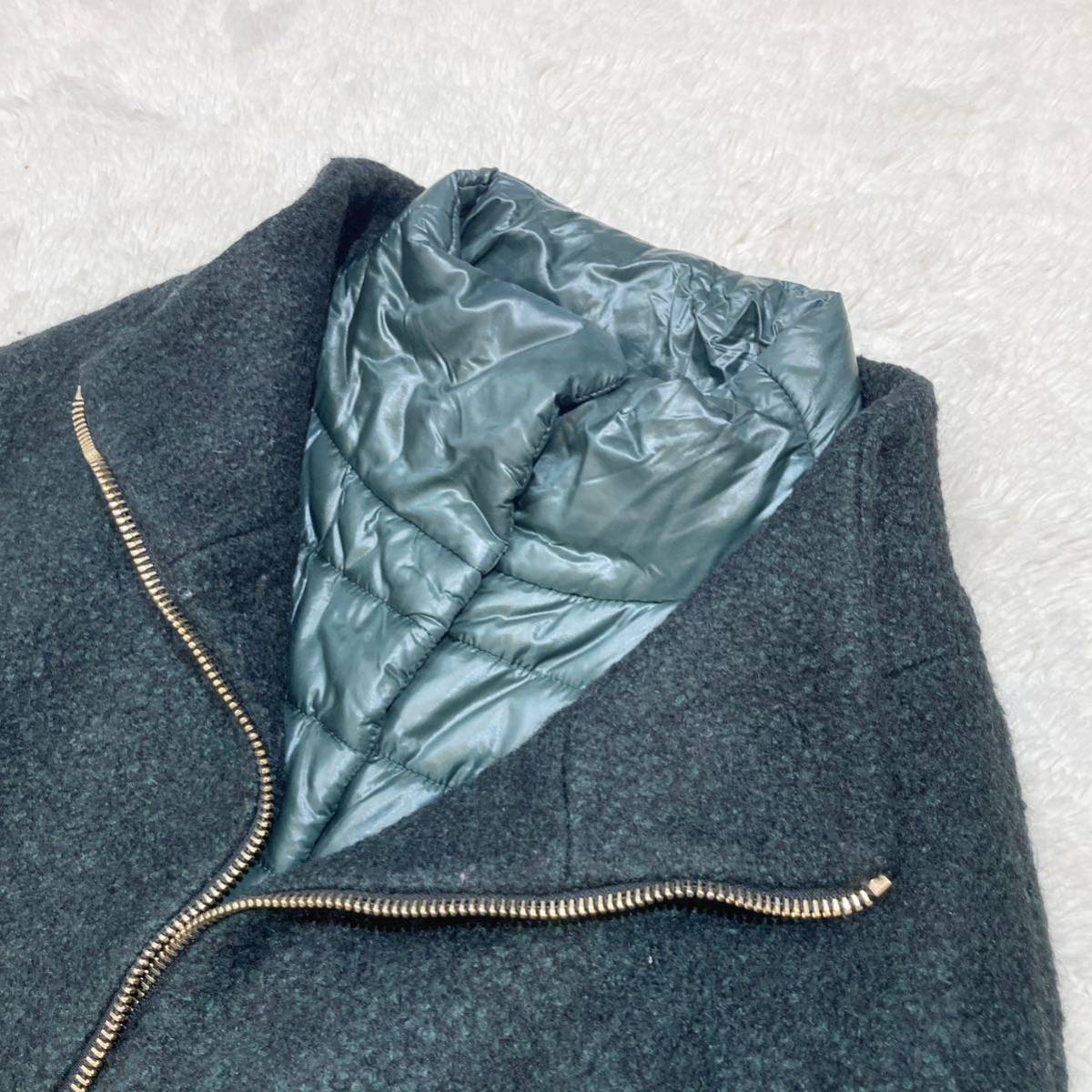 ダウン部分はグリーン、コート面はブラックとグリーンのミックスされたカラーリングで、絶妙なニュアンスカラーをしたアウターです。