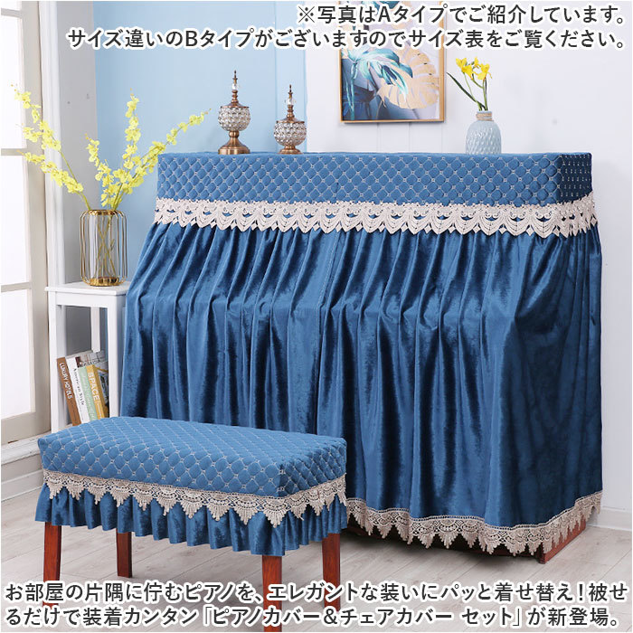 | 商品説明 | ・・お部屋の片隅に佇むピアノを、エレガントな装いにパッと着せ替え!ふわっと被せるだけで装着カンタン「ピアノカバー&チェアカバー セット」が新登場。 ・【ピアノ周りを明るくアップデート】 ・艶やかな黒いパネルをキラリと光らせ、リビングや子ども部屋に鎮座するアップライトピアノ。重厚になりがちな雰囲気を華やかにアップデートするピアノカバー。 ・【ホコリやキズからピアノを保護】 ・鏡面のようなピアノのパネル表面に、柔らかな生地感のカバーをすっぽり足元まで被せることで、降り積もる小さなホコリや傷付きからピアノを優しく保護。 ・【カバーを外さず、そのまま弾ける】 ・ほのかな光沢が美しいベルベット調生地をゆったりとドレープさせ、贅沢なボリューム感を演出。中央のスリット部分を左右に開けば、カバーを外さずにピアノ演奏が可能。 ・【天面はふんわりキルティング仕上げ】 ・カバー上部は、ふんわり中綿を詰めたキルティング仕上げになっているので、ピアノの天面にオブジェや置き時計、コーヒーカップなどを置いても大丈夫。 ・【同じデザインのチェアカバー付き】 ・ベンチタイプのピアノチェアにぴったり装着、ピアノカバーとトータルコーディネートができる、同じデザインのチェアカバーが付属。 ・【選べる2タイプ】 ・お手持ちのピアノチェアのサイズに合わせて、シングルチェアカバー(Aタイプ:横幅約55cm)と、ダブルチェアカバー(Bタイプ:横幅約:75cm)の2種類からお好みのタイプがチョイス可能。 ・【ご家庭でカンタンお洗濯】 ・ピアノカバーもチェアカバーも、手軽にお手入れができる簡単ウォッシャブル仕様。いつでも清潔に使えて、小さなお子様がいるご家庭でも安心。(※洗濯ネットをご使用ください。) ・【リッチな風合いで気持ち華やぐ】 ・ピアノルームをちょっぴり贅沢に彩る、上品で深みのあるカラーバリエーション。ゴールドブラウンの糸を繊細に編み込んだ、カバー裾のアンティーク風レースが艶やかなアクセント。 |