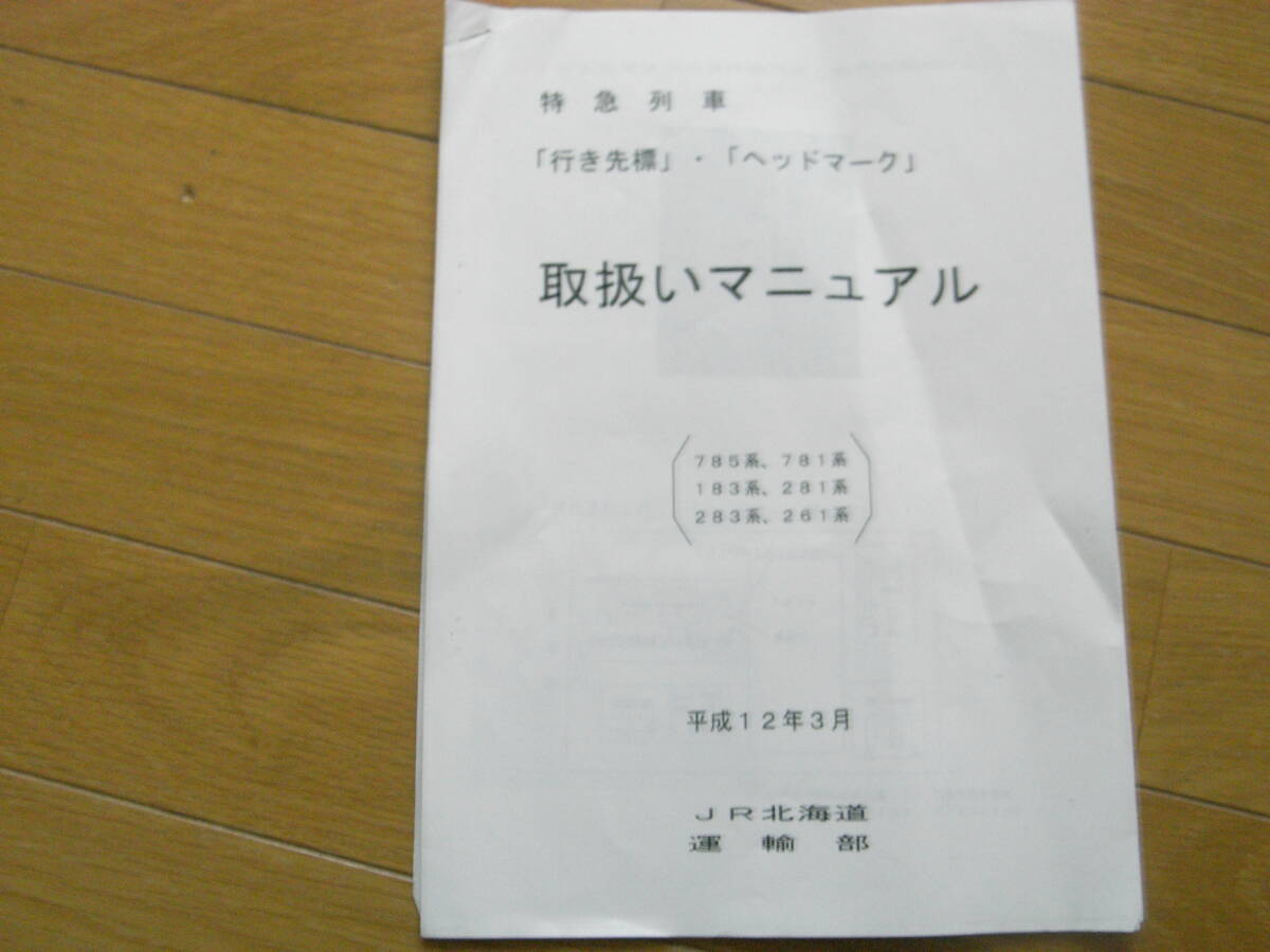 資料/特急列車「行き先標」・「ヘッドマーク」取扱いマニュアル(785系 781系 183系 281系 283系 261系)平成12年3月 JR北海道運輸部