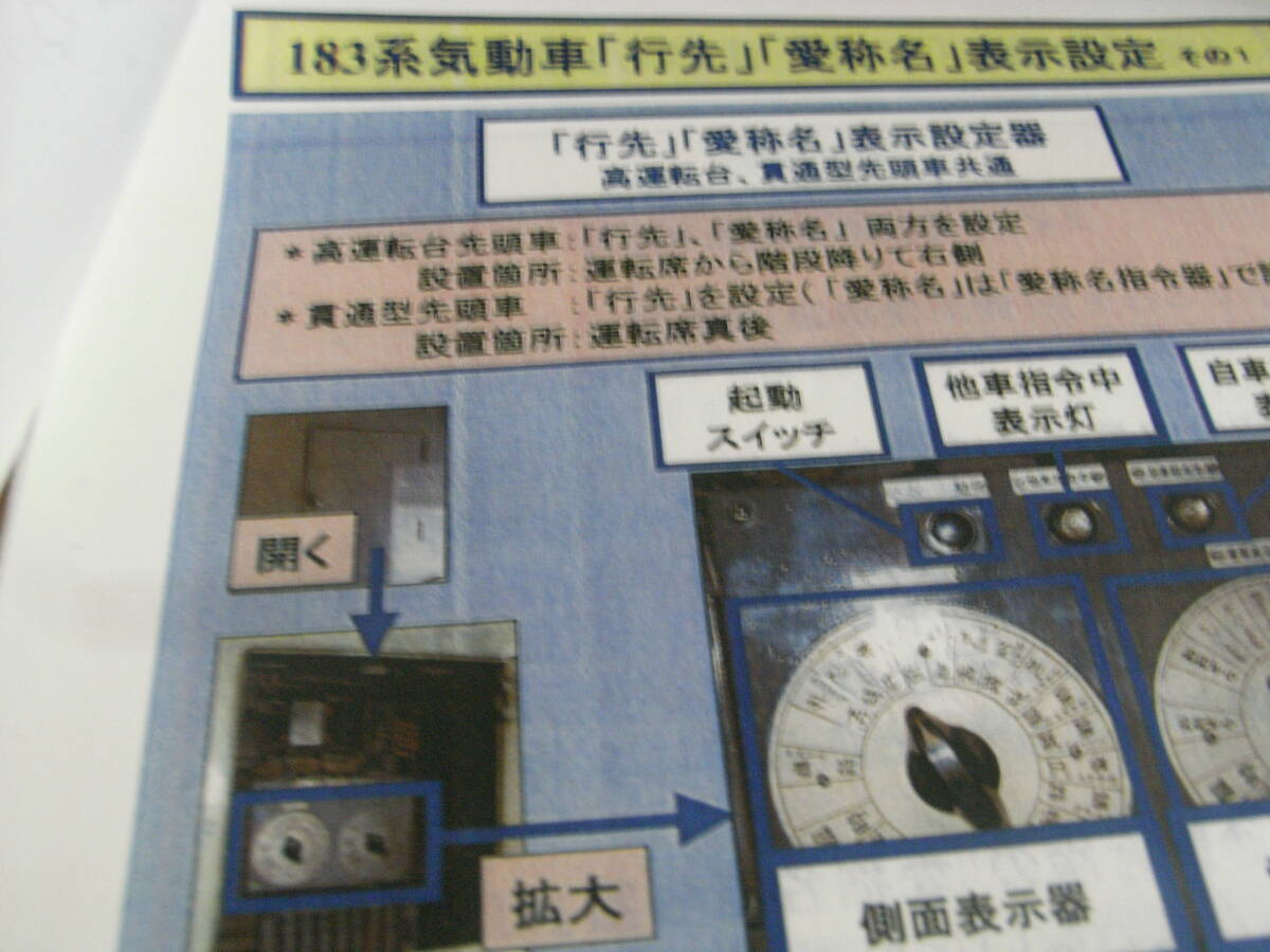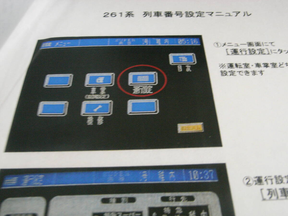 A4・片面印刷・11ページ・左上1か所ホッチキス留め仕様・785系電車設定器搭載と名称(各運転室共通)/785系電車愛称名・行先表示器取扱/781系電車行先指令器搭載位置(各運転室共通)/781系電車前頭・側面表示器取扱/183系気動車「先行」「愛称名」表示設定/283系振子車両の運行設定方法について/283系振子車両の運行設定方法について/261系列車番号設定マニュアル
