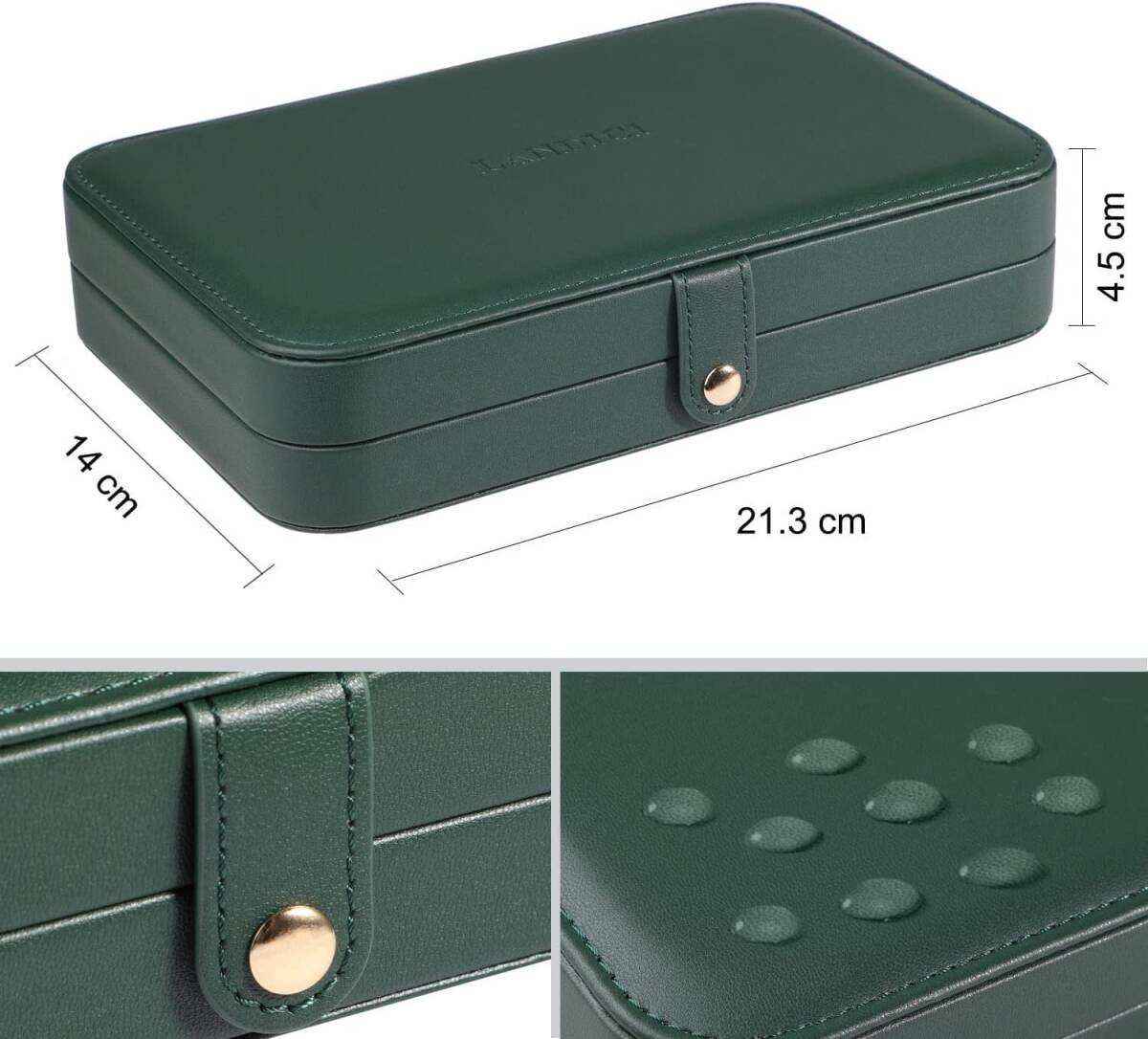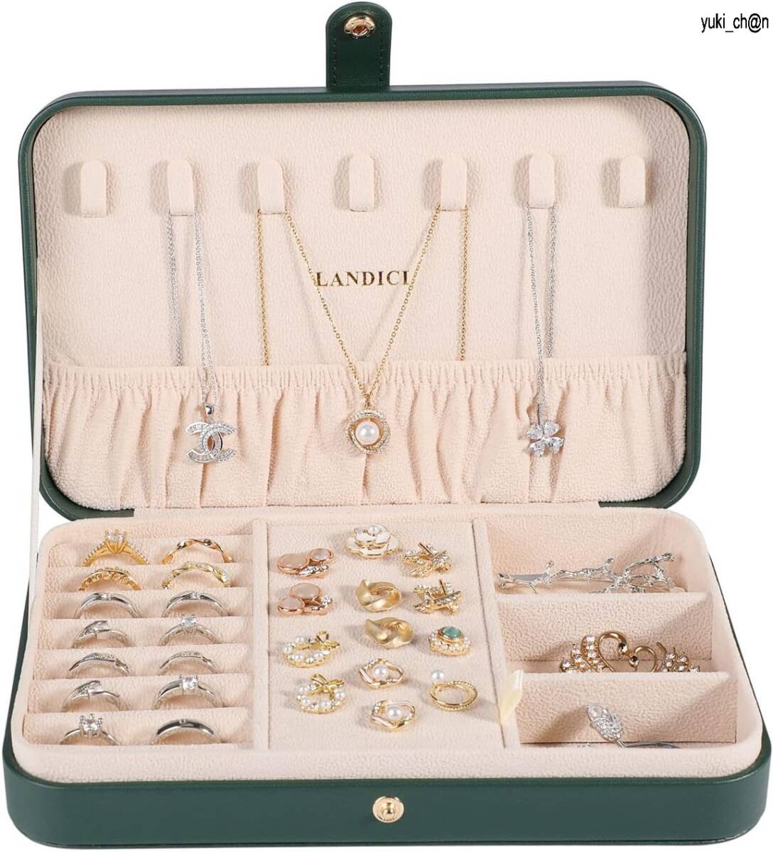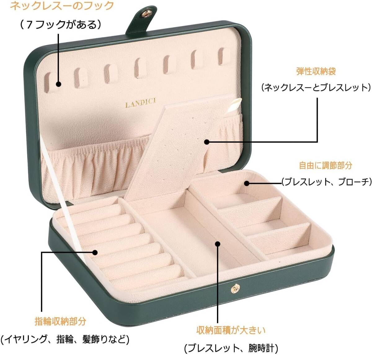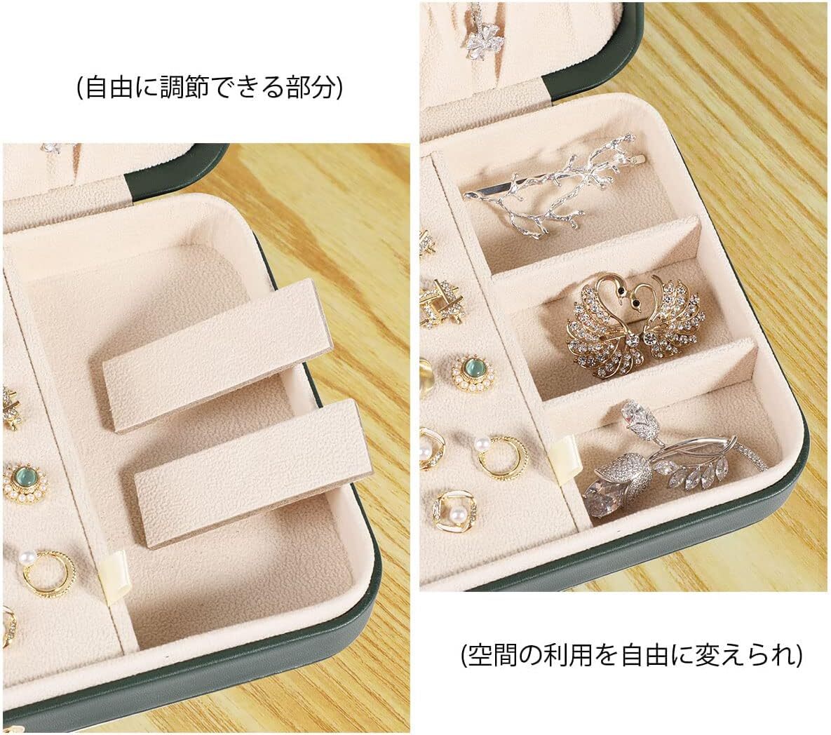 ジュエリーボックス 深緑 PUレザージュエリーケース 指輪置きジュエリー収納ケース 携帯用 持ち運び 仕切り付き宝石箱 女性 女の子用