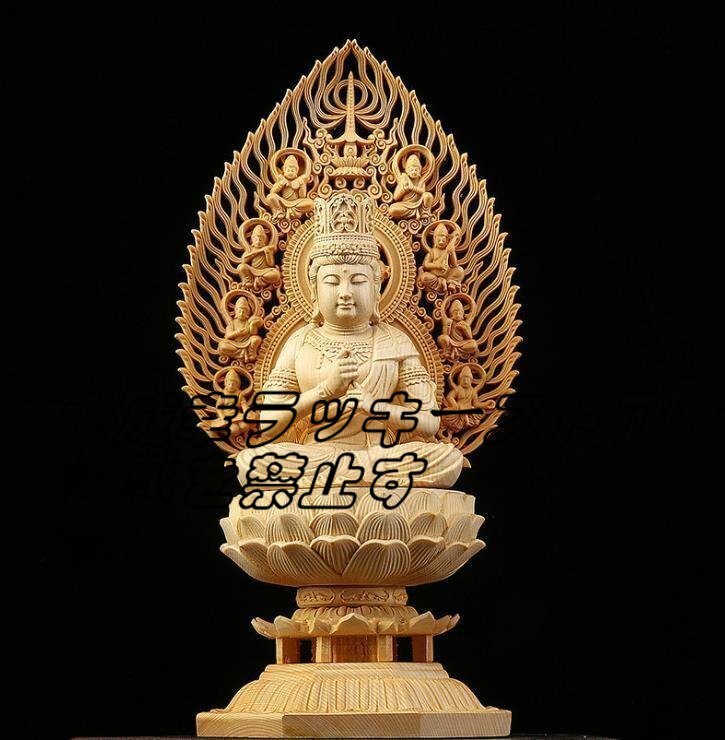 極上品★ 仏教美術 精密彫刻 仏像 手彫り 木彫仏像 大日如来座像 高さ約28cm