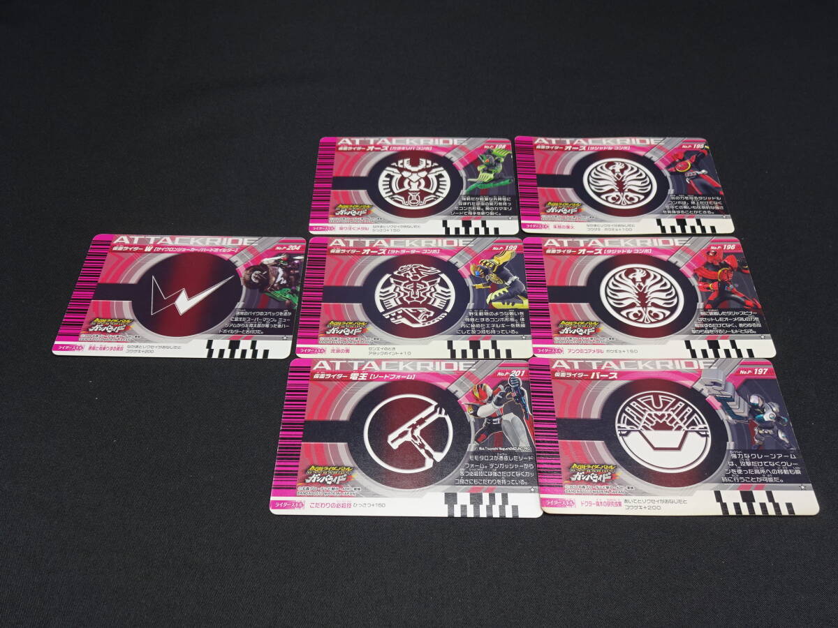 商品説明 | 品名:仮面ライダーバトル ガンバライド メーカー:BANDAI No.:No.P-195、196、197、198、199、201、204、 カード種類:ヒーローカード 枚数:7枚 状態:中古 |