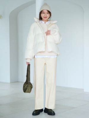 やわらかなコットン100%デニム。ローウエストですっきりとした着こなしができる。