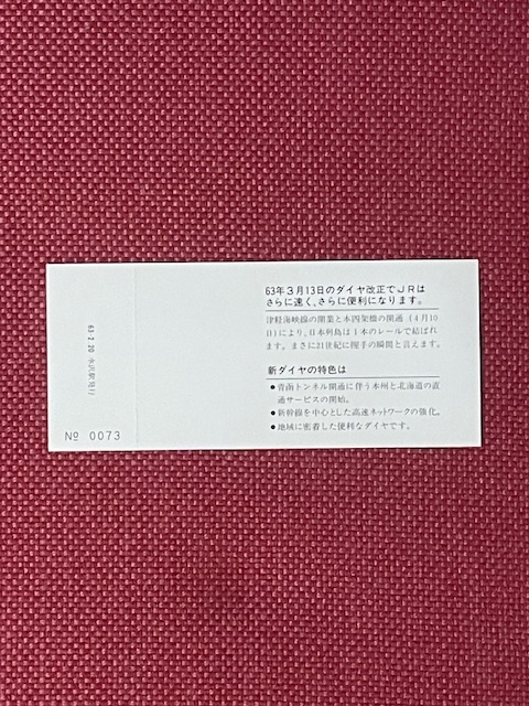 JR東日本 21世紀へ握手 昭和63年ダイヤ改正 記念入場券 (管理番号11-19)