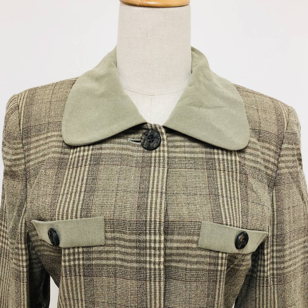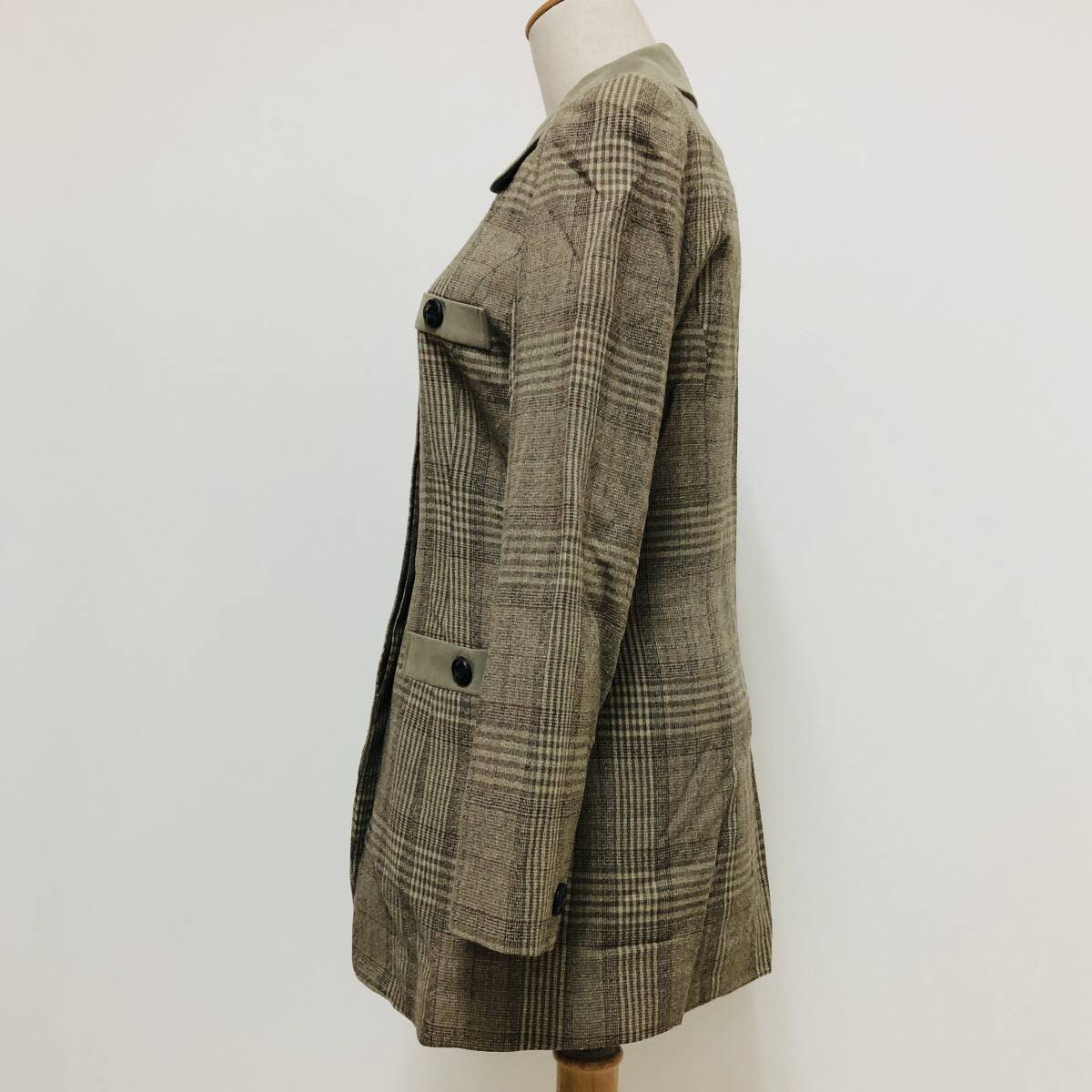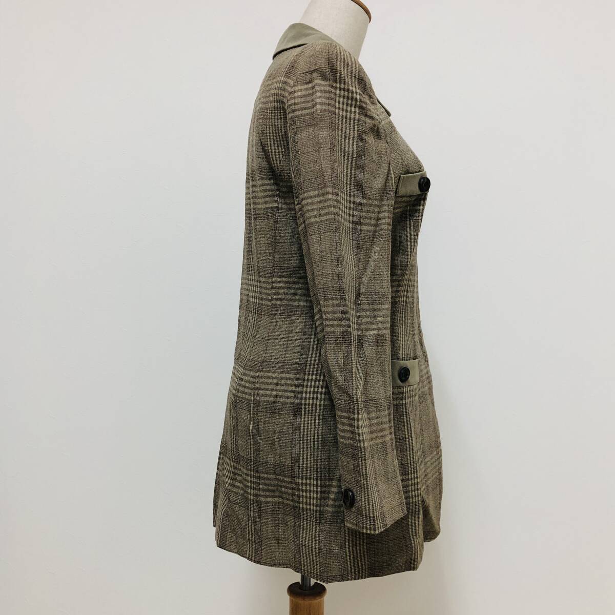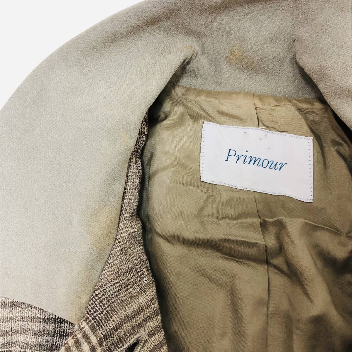 k3399 Primour レディース ジャケット ロング丈 茶 グレー 肩パット 裏地 毛混 チェック柄 2ポケット レトロ エレガントガーリーチック