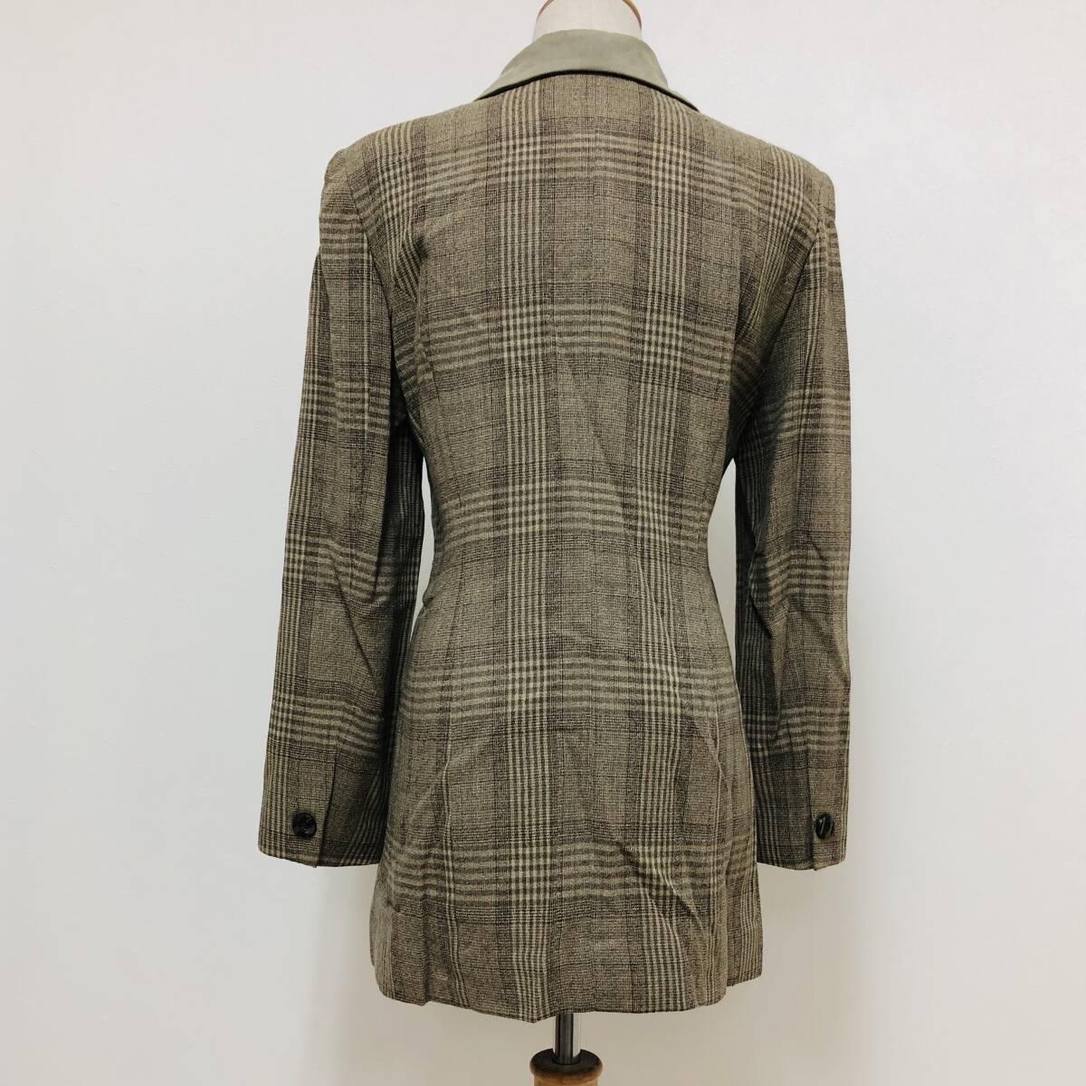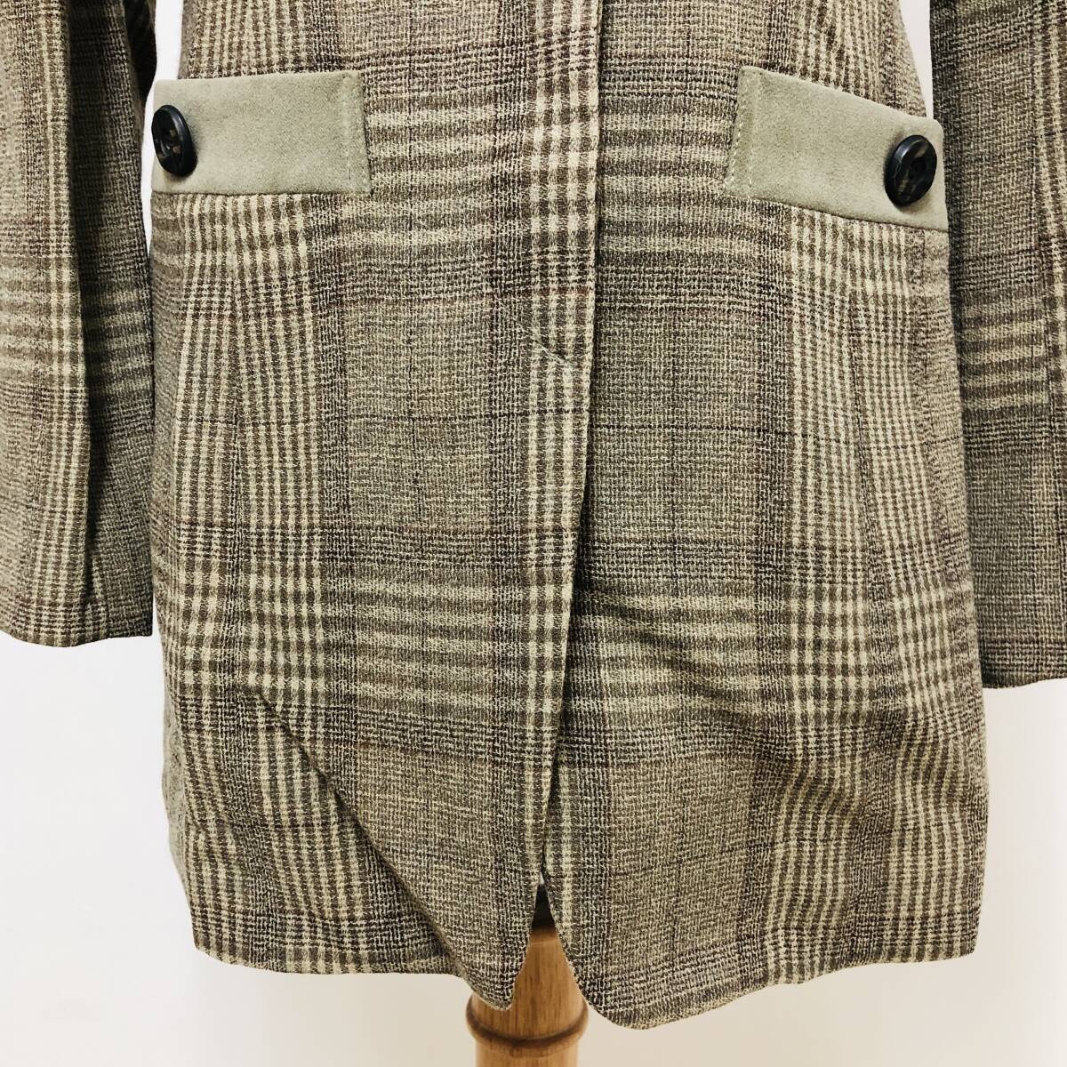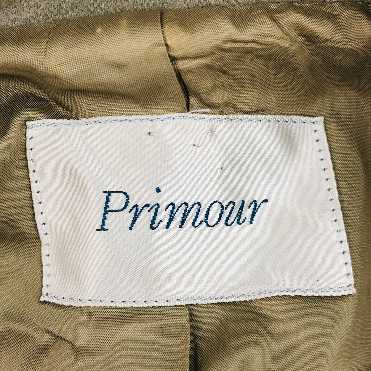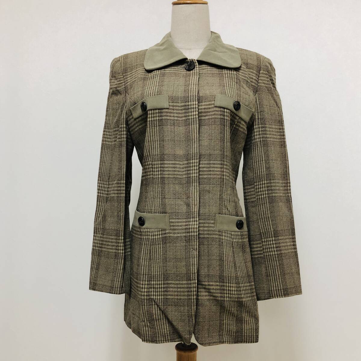 k3399 Primour レディース ジャケット ロング丈 茶 グレー 肩パット 裏地 毛混 チェック柄 2ポケット レトロ エレガントガーリーチック