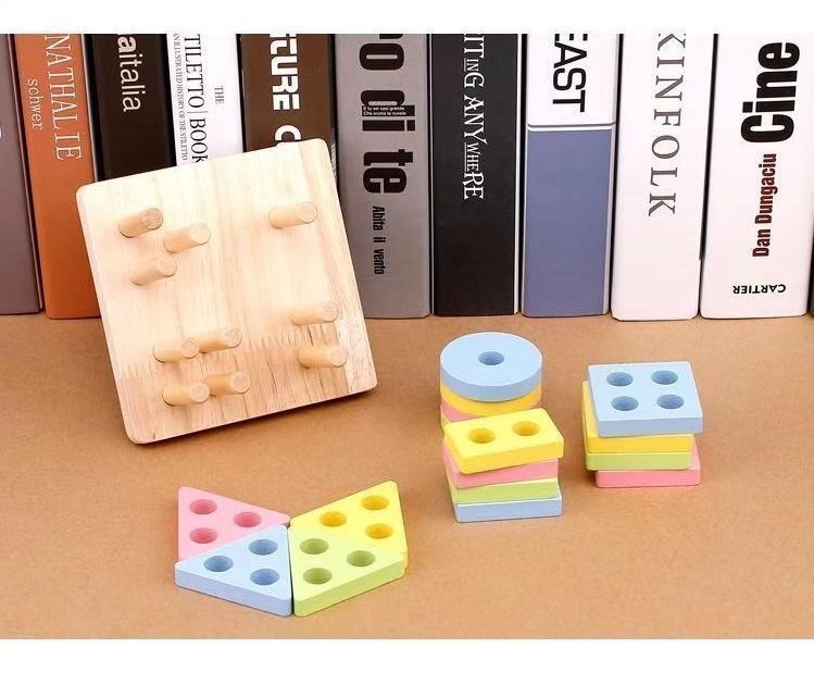 ●【商品詳細】カラフルなピースを穴の棒に挿して重ねていく木製の知育玩具です。 数や形を覚えることができるだけなく、棒に積木の穴を挿していくことで、視覚と手先の協調性を養うことができます。