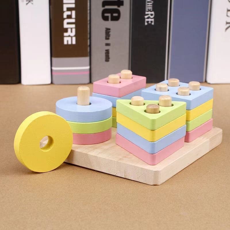 CJM432★木製玩具 積み木パズル マカロン色 積み木おもちゃ 指先トレーニング プレゼント 知育玩具 カラフル 視覚 幼児 手先