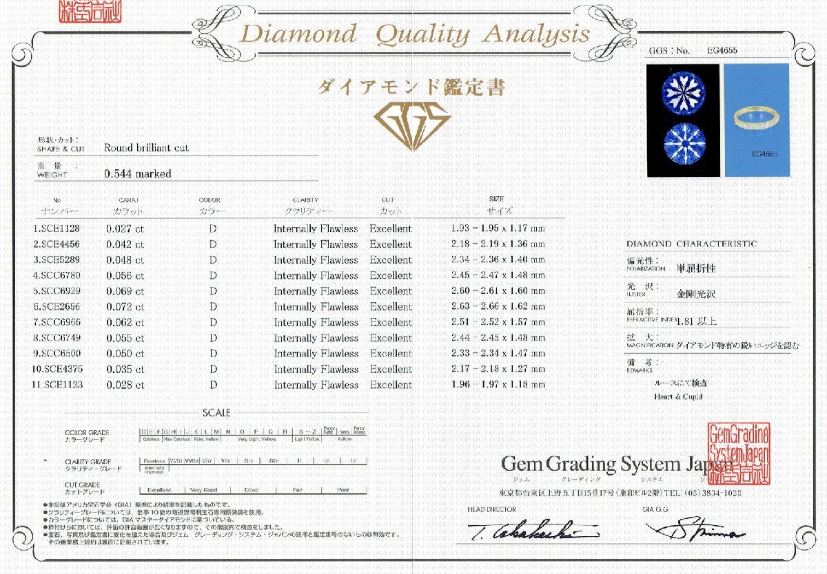 全石が最高品質グレード ダイヤモンド 鑑定書付 合計0.544ct 18金 エタニティーリング 商品動画あり 送料込み