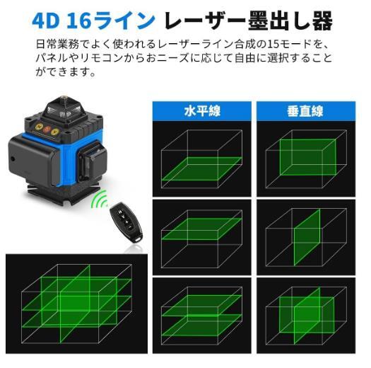 16ライングリーンレーザー墨出し器/4D/水平器/水準器/墨出し機/墨だし器/測定器/自動補正機能/ 高輝度 高精度/1.2m三脚付き
