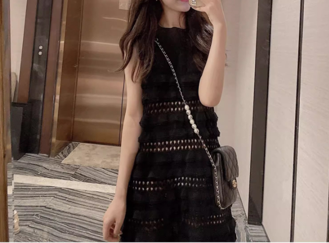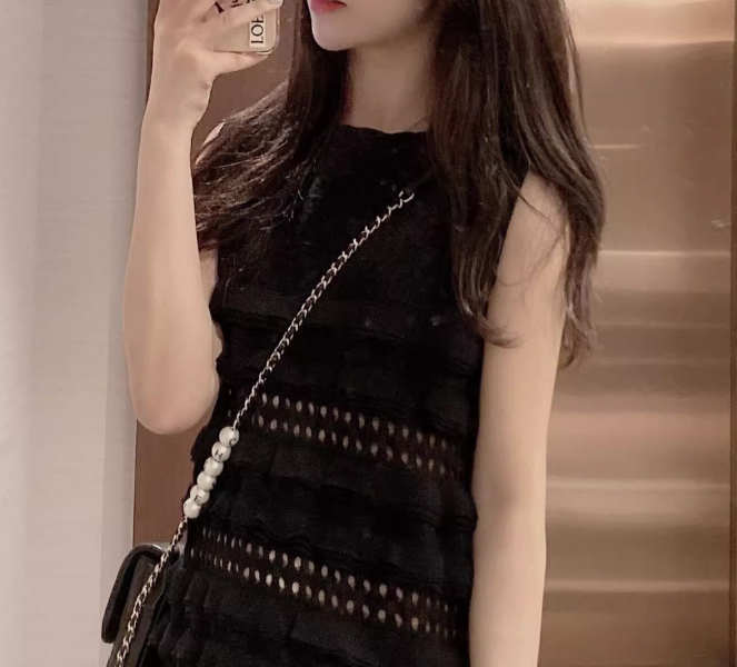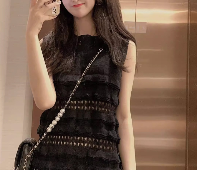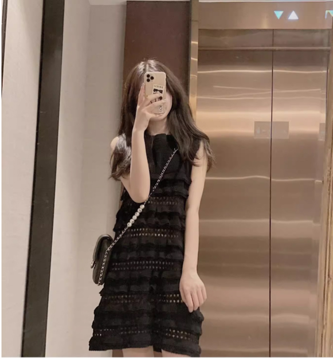 レディースノースリーブフリルワンピース黒色XL