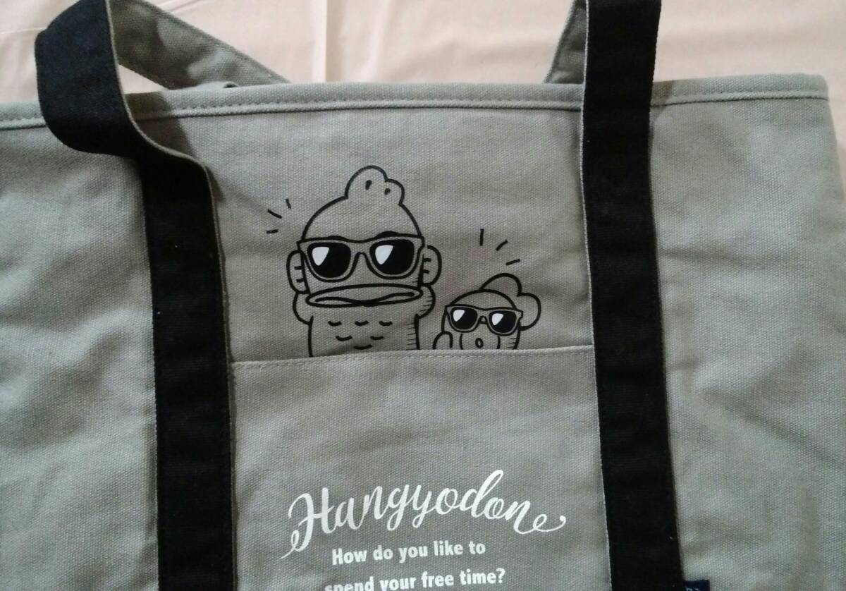 サンリオ ハンギョドントートバッグ 横長型 グレーです。