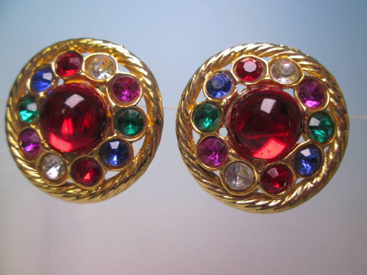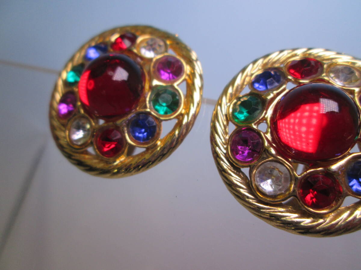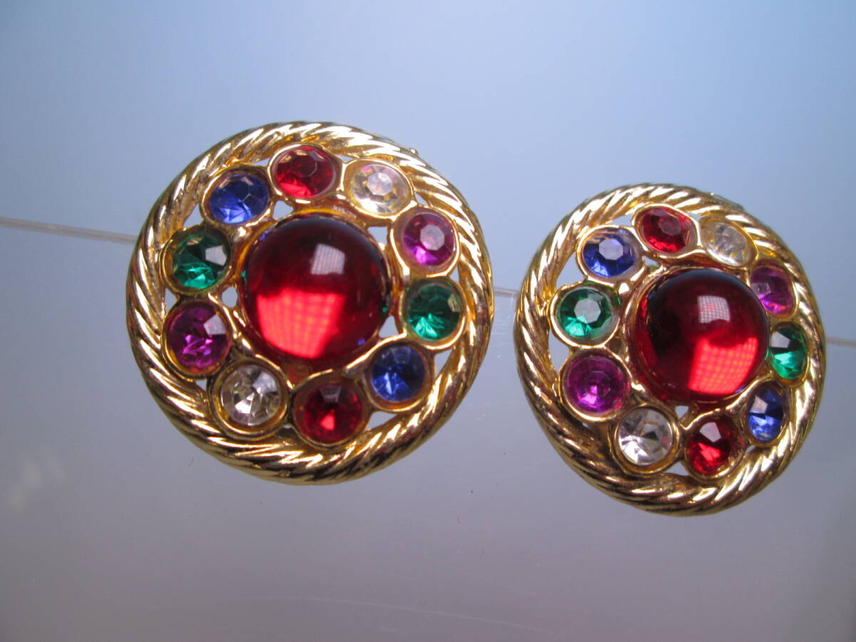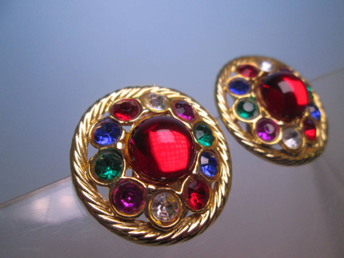 ☆ヴィンテージ カラフルなラインストーンゴールドカラーイヤリング 22g