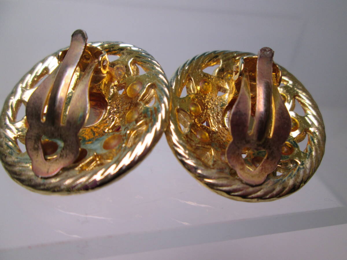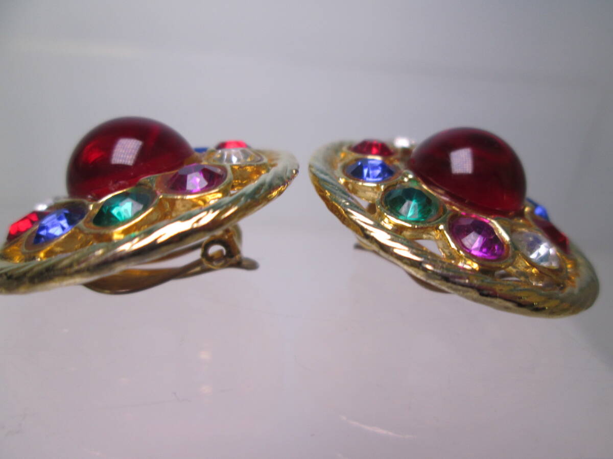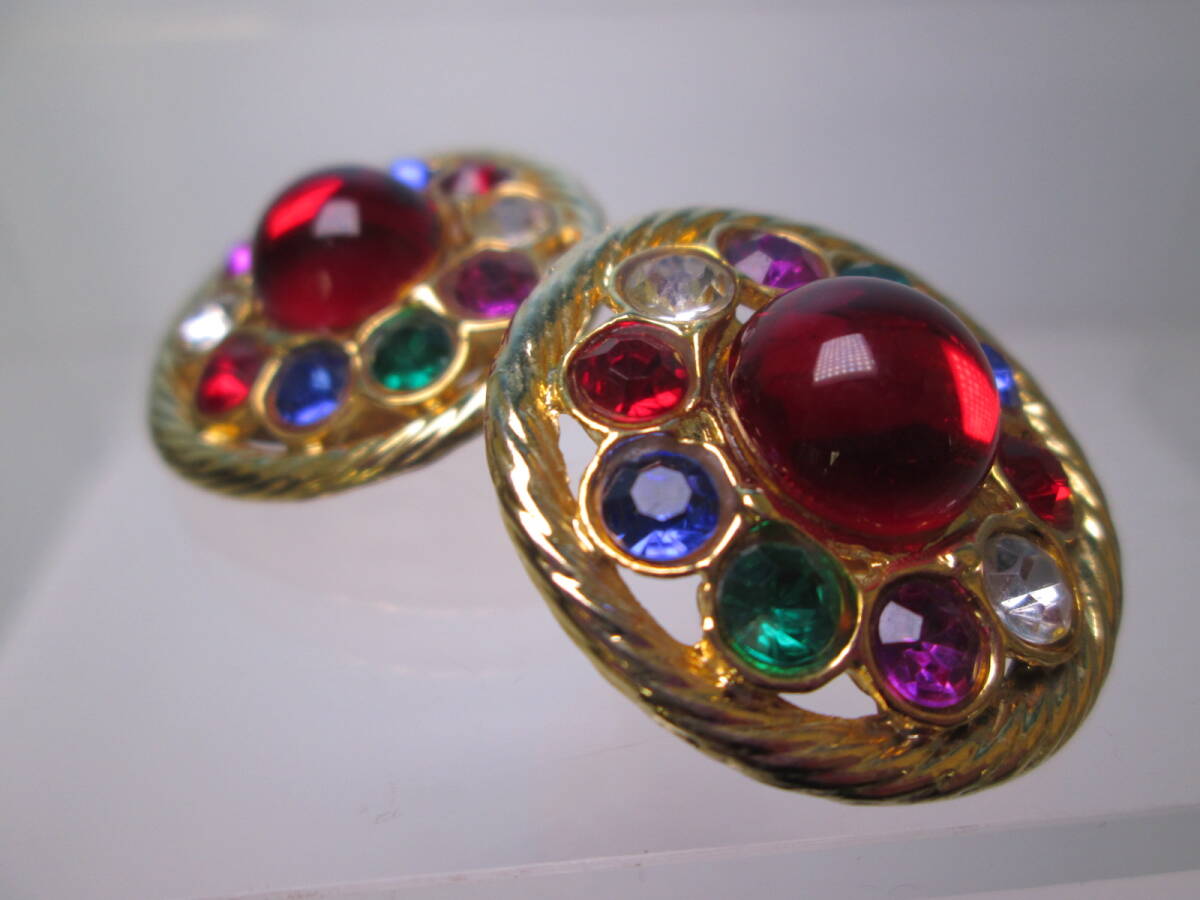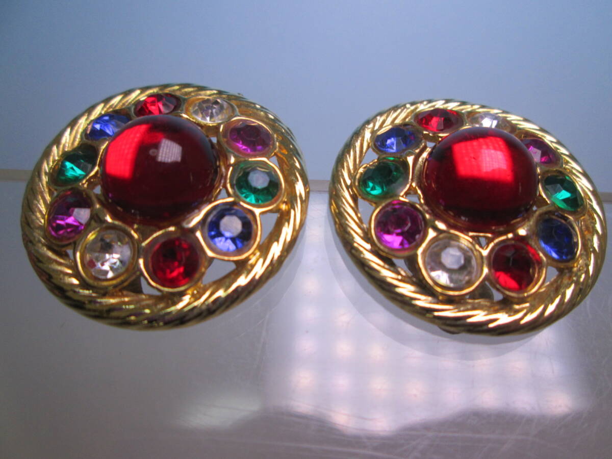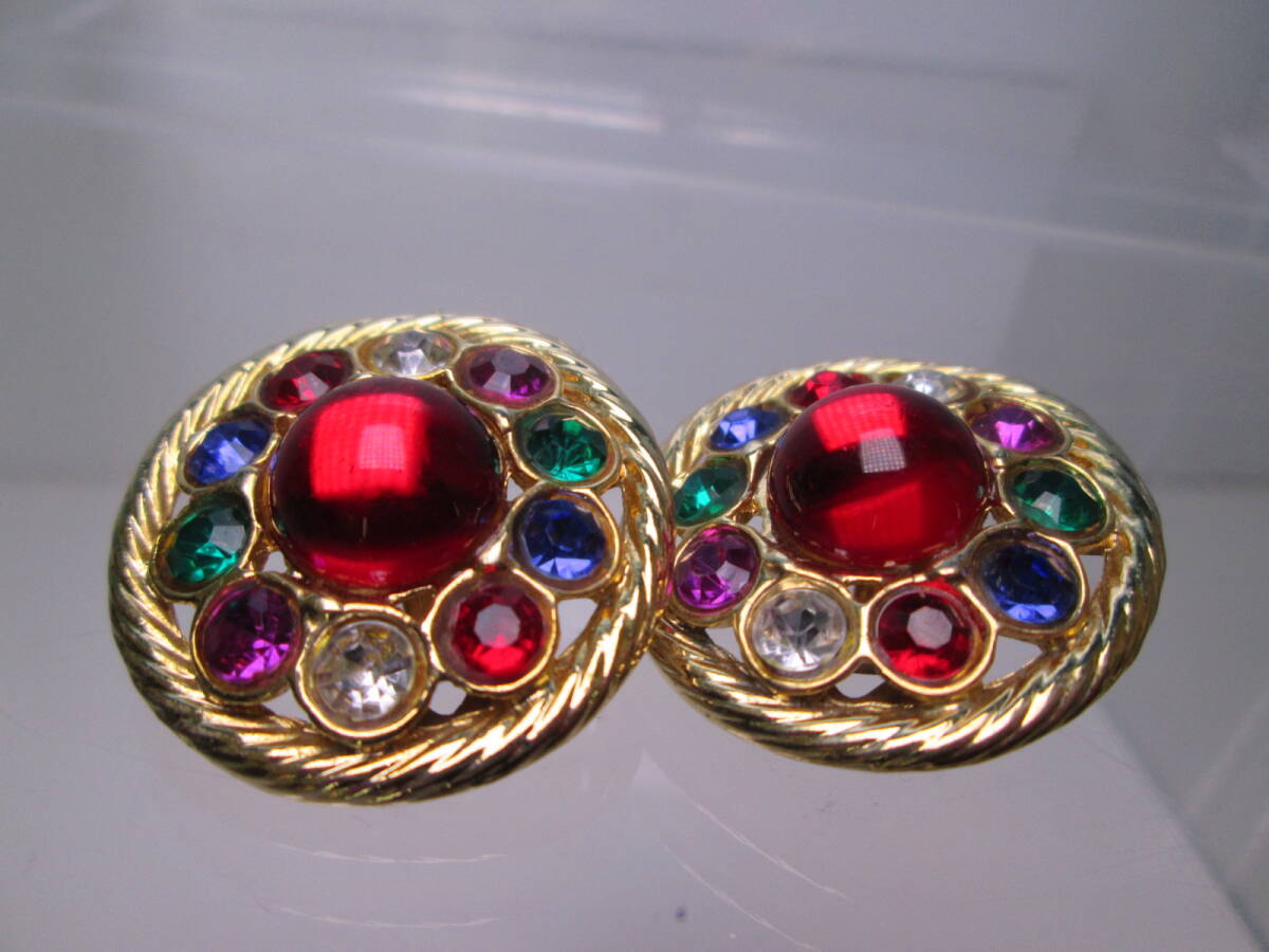 ☆ヴィンテージ カラフルなラインストーンゴールドカラーイヤリング 22g