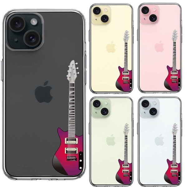iPhone15Plus ケース クリア エレキギター スマホケース 側面ソフト 背面ハード ハイブリッド