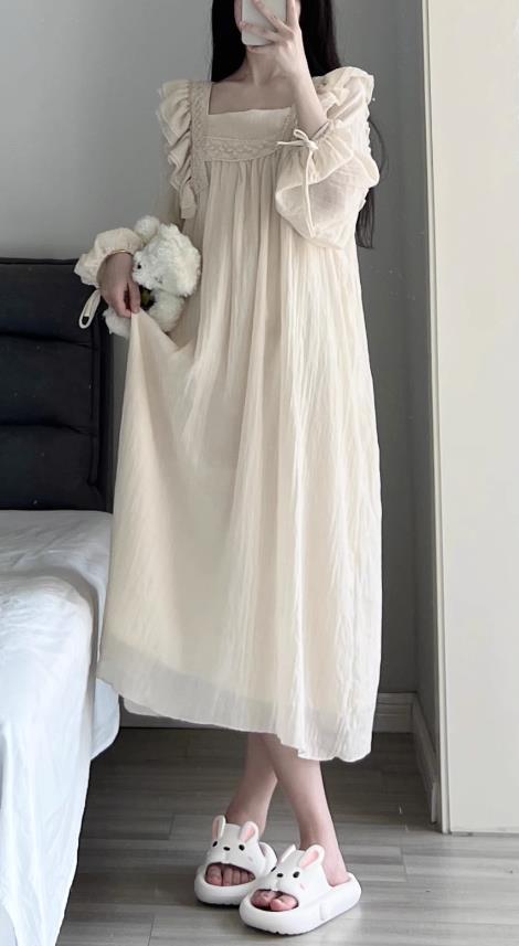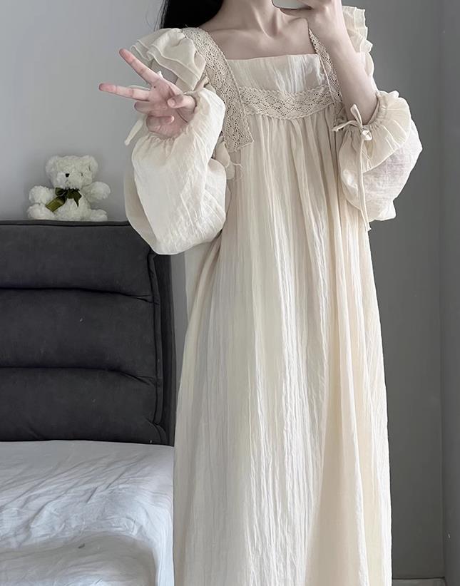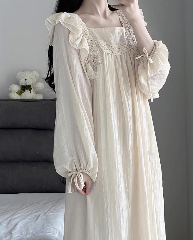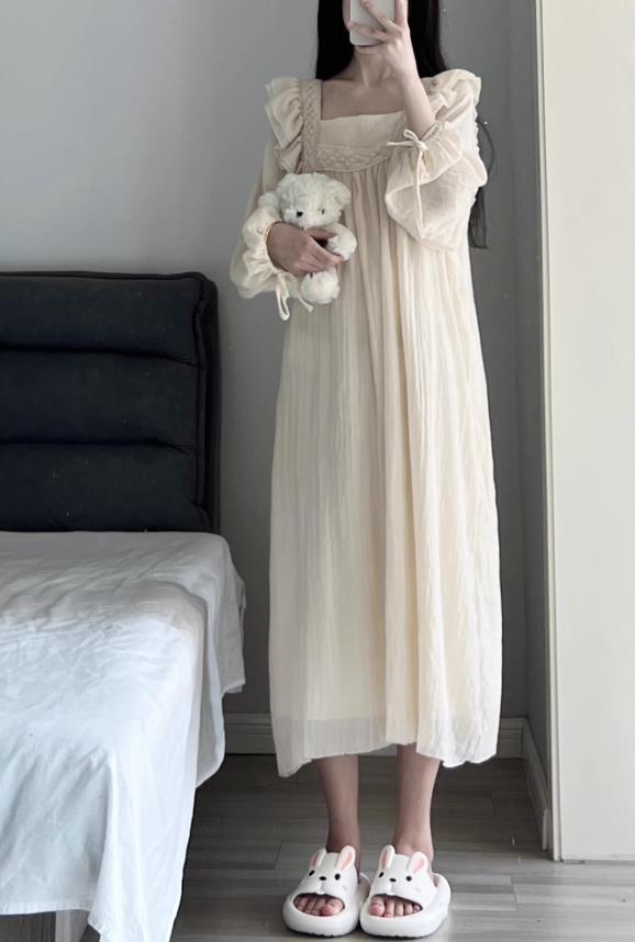 春秋 部屋着 レディース可愛いネグリジェ パジャマ ワンピース お姫様 ルームウェア ナイトウエア 長袖 無地 通気 K197