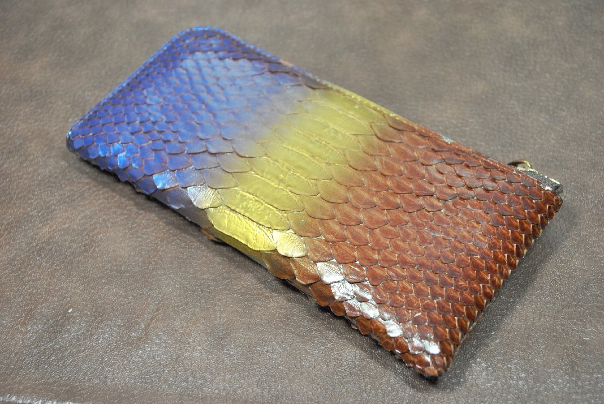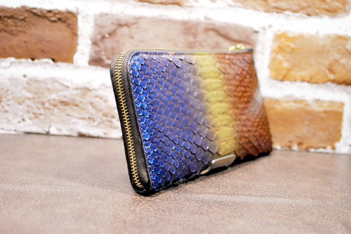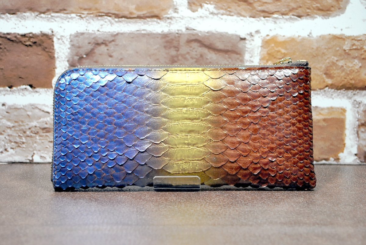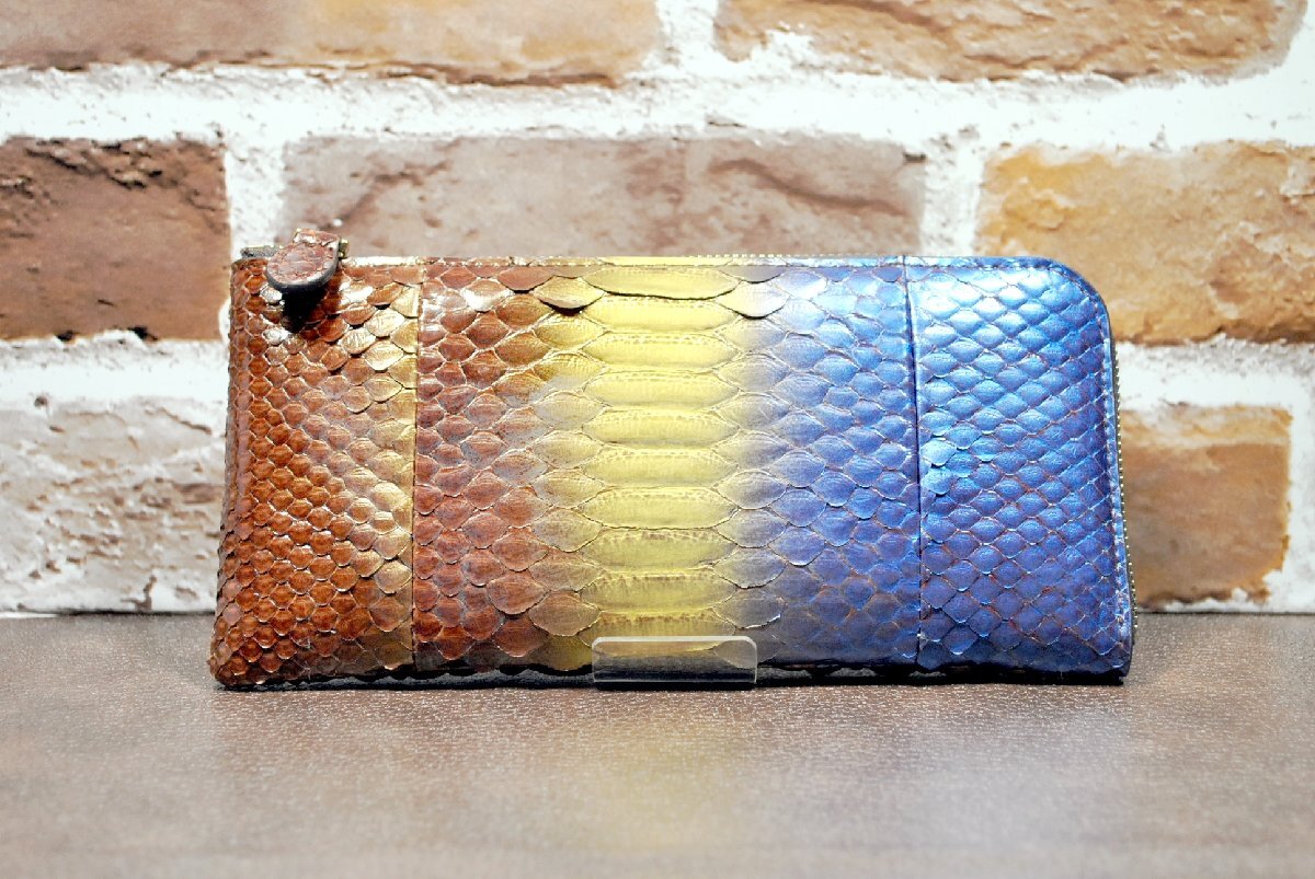 ダイヤモンド・パイソンL字ファスナー長財布 (グラデーションメタル仕上げ) |