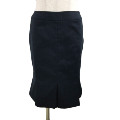 エムエフエディトリアル m.f.editorial スカート フレア プリーツ 膝丈 リネン混 無地 S 紺 ネイビー レディース