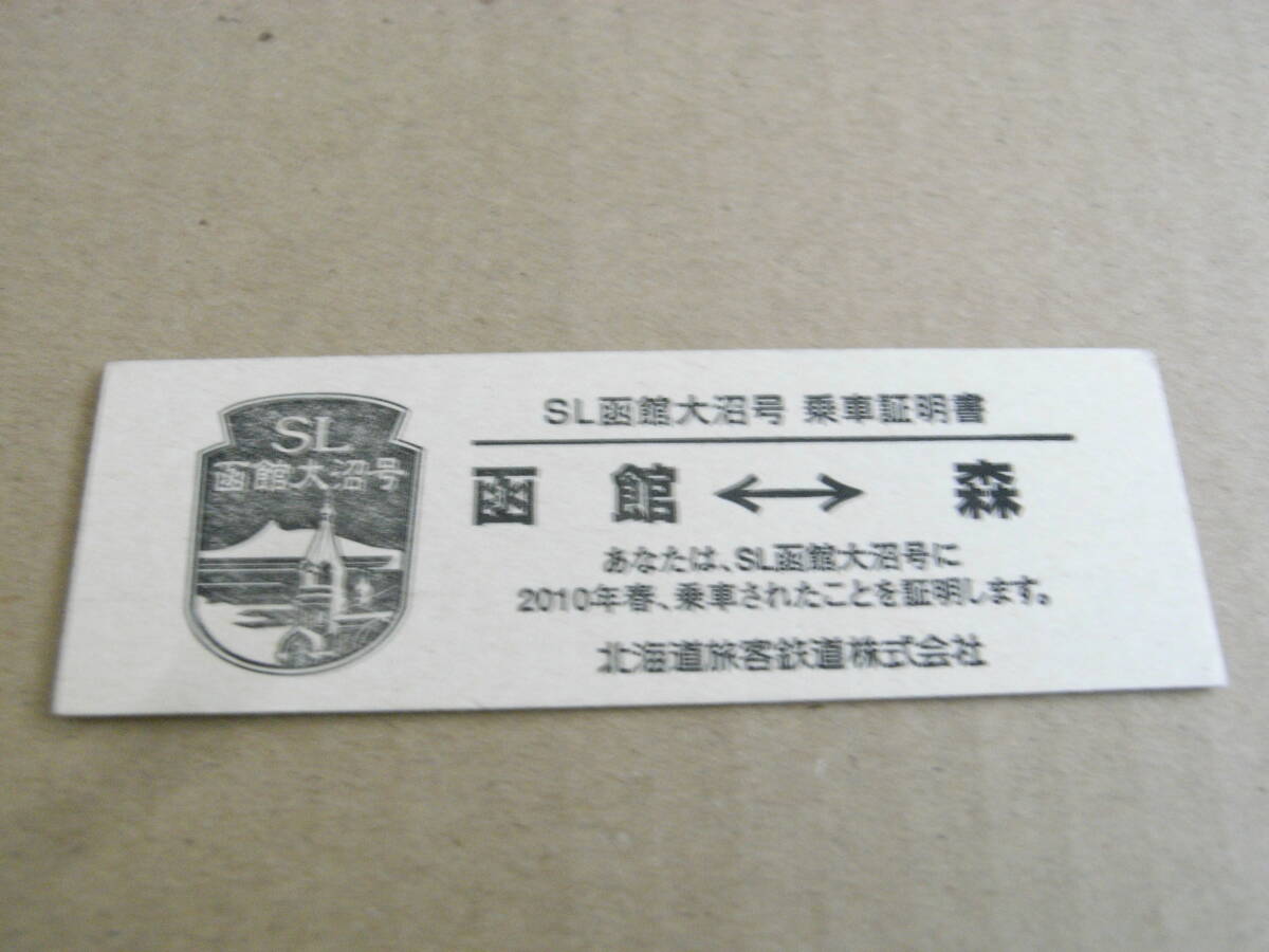SL函館大沼号 乗車証明書 函館-森 2010年 北海道旅客鉄道株式会社 函館運輸所発行 硬券 JR北海道