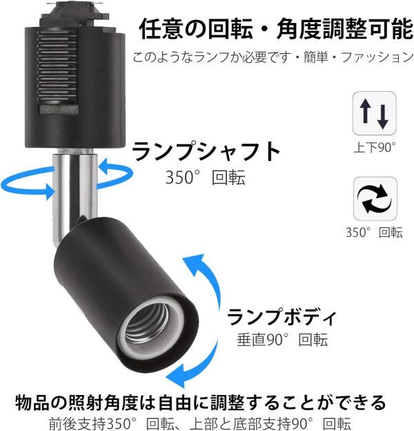 OTD スポットライト ダクトレールライトソケット E17口金 天井照明 間接照明 角度調整可能 【ブラック 4個入り】