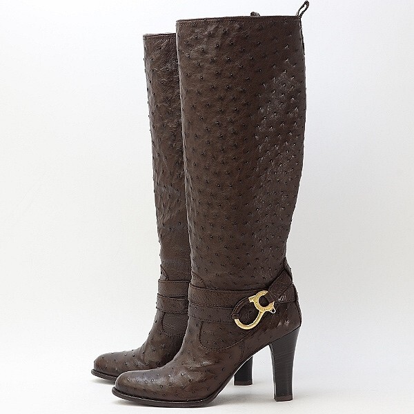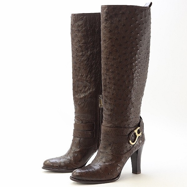 ◆BALLY バリー オーストリッチレザー ベルトデザイン ヒール ロング ブーツ 茶色 ブラウン 41 大きいサイズ | |
