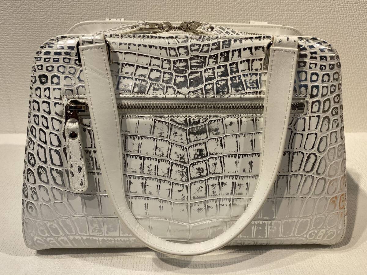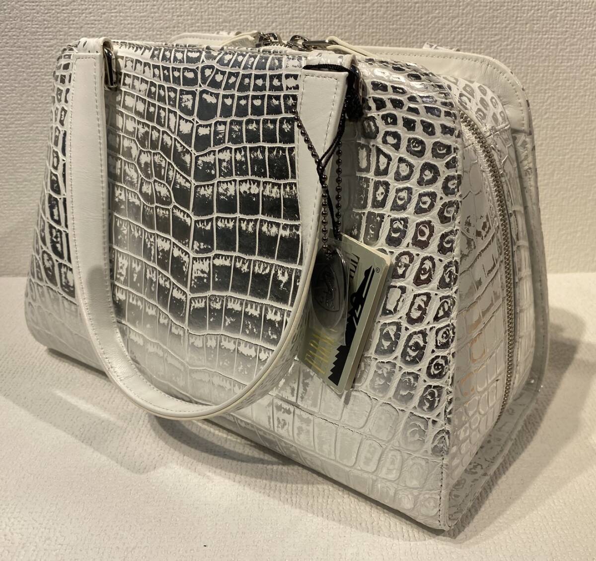 『6721』新品未使用品 JRA パールホワイト クロコ ショルダーバッグ ハンドバッグ リアルクロコ クロコダイル マットクロコ 本革 | ||