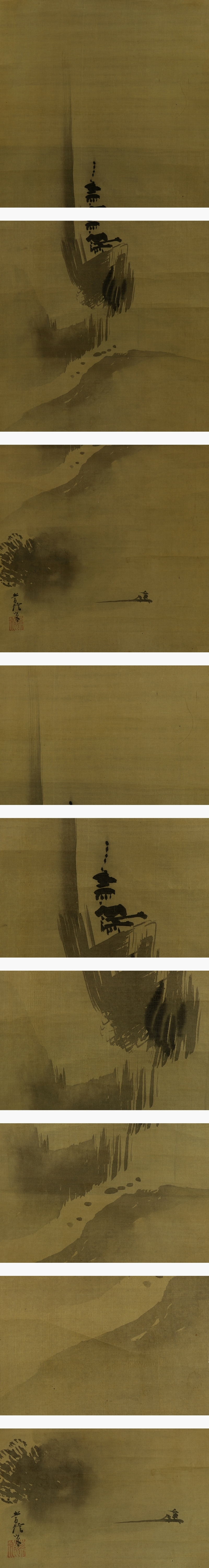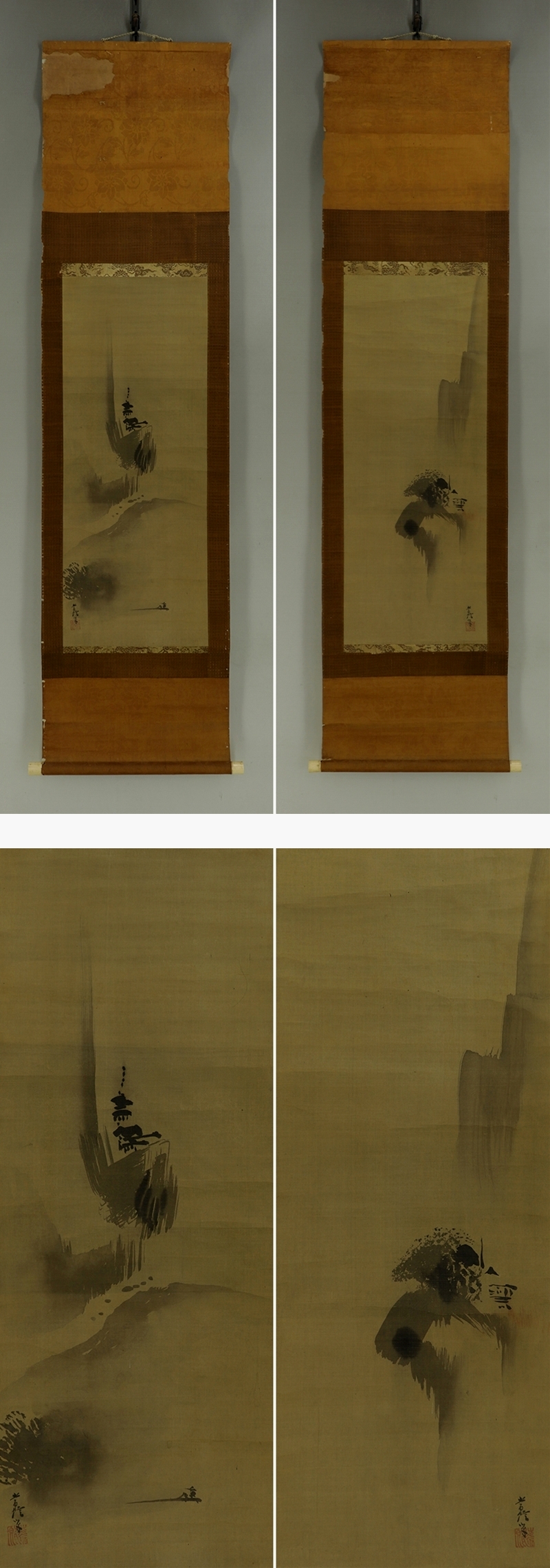 | №2310003【模写】狩野常信【双幅・水墨山水】◆絹本◆合箱◆掛軸 | |