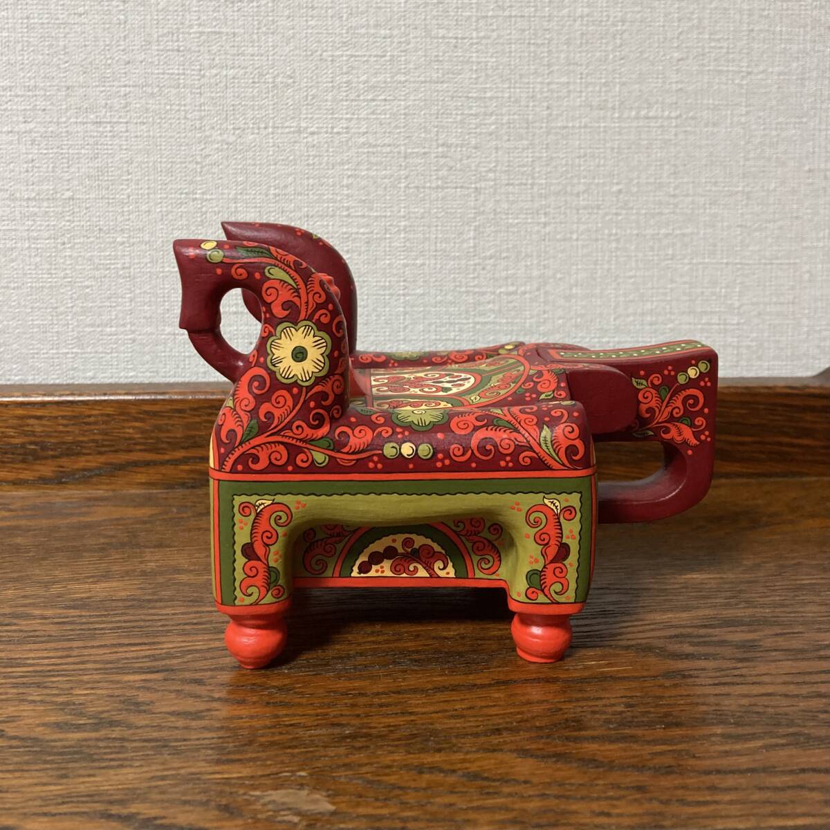 幸運のシンボルと言われている馬の箱にはアルハンゲリスクの伝統模様の植物がびっしりと美しく描き込まれています。