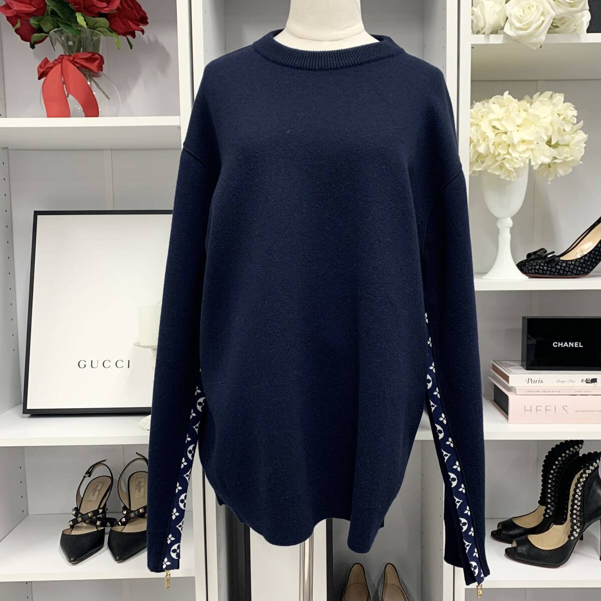 9472 ヴィトン オープンスリーブラウンジウェアプルオーバー ニット トップス モノグラム 長袖 ネイビー