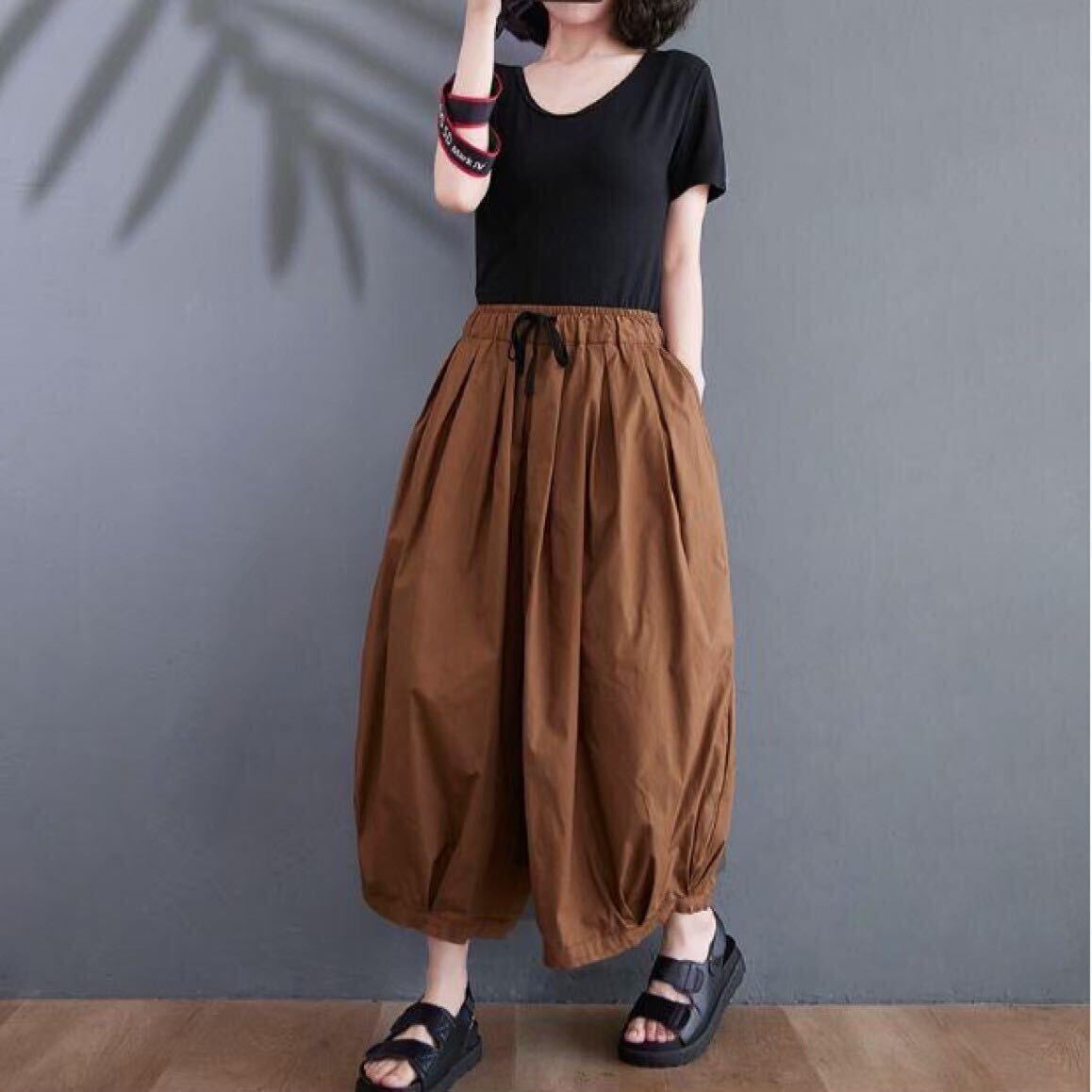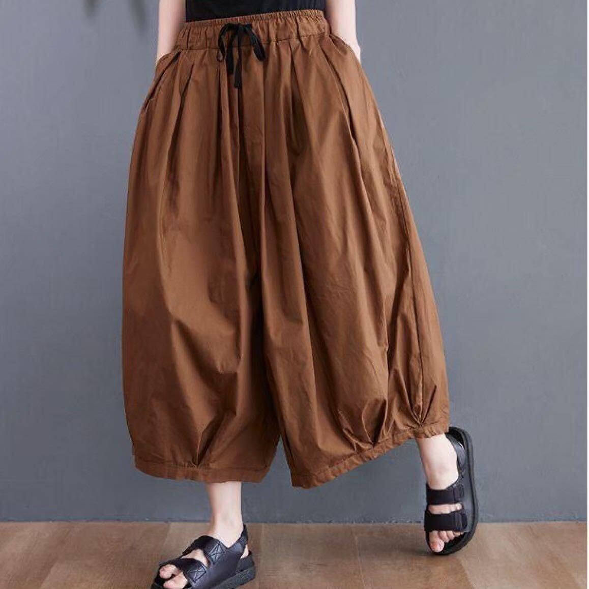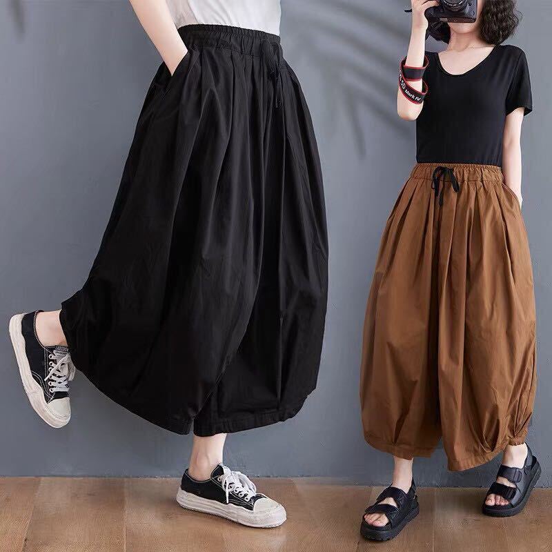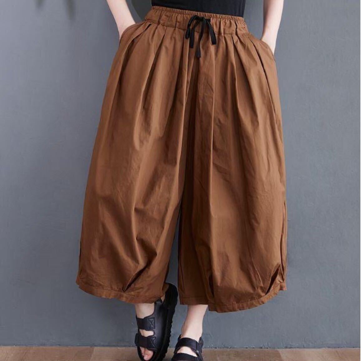 『 ワイドパンツ ボトムス カボチャパンツ ハーフパンツ シンプル パンツ 体型カバー イージーパンツ ワイドレッグパンツ 』