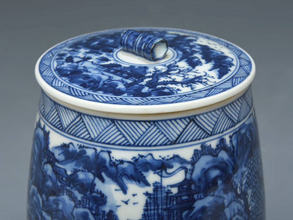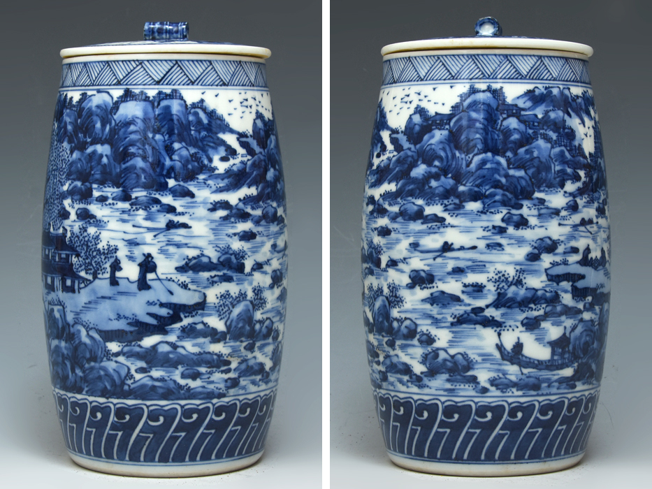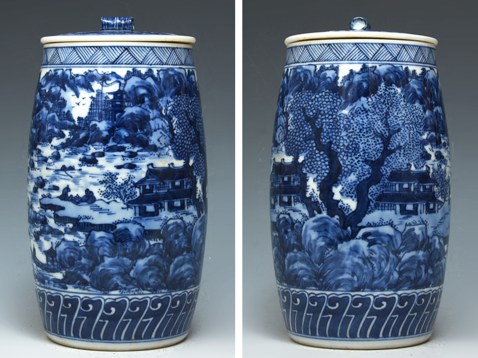 平安 二代西村徳泉 (造) 染付楼閣山水図 水指 共蓋 共箱 水屋道具 茶器 茶道具 美品 京焼 陶磁器 |