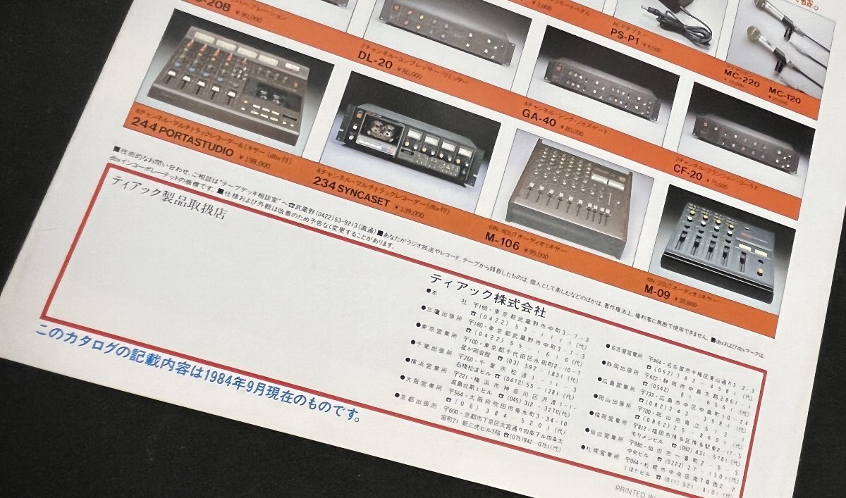 | カタログ TASCAM PORTA ONE 1984年 カセット式ポータブルMTR ティアック TEAC | |