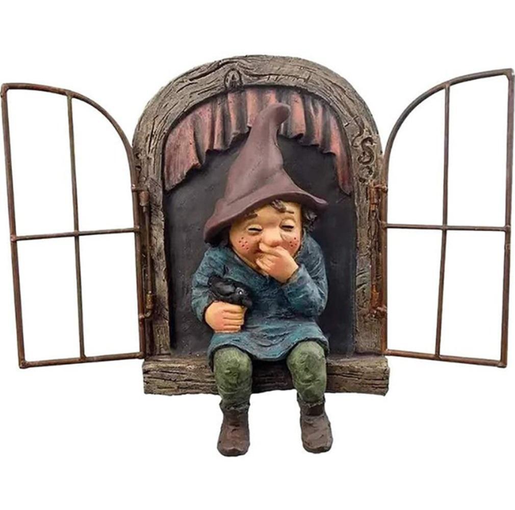 窓に腰かけた、愛くるしいいたずらっ子の小人のオーナメント!