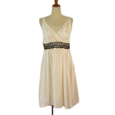 イネド INED ワンピース フレア カシュクール レース ノースリーブ 9 アイボリー レディース