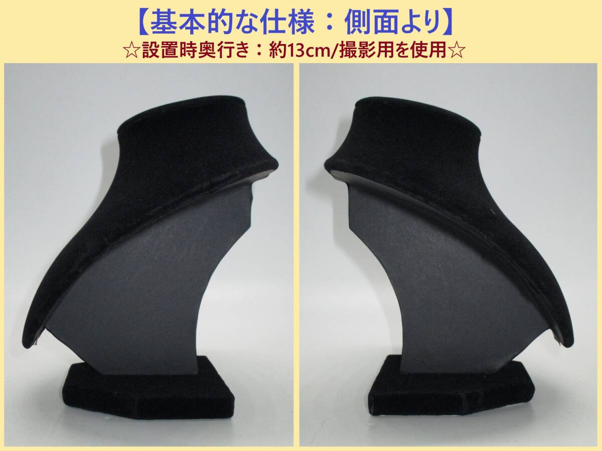 「訳あり」扱いの、未使用品です。 専用のパッケージ等の外装は、ありません。 同じ仕様のネックレストルソー 10点セット商品です。 表面素材はベルベット風生地 柔らかく落ち着いた雰囲気の ネックレストルソーです。 小ぶりなサイズですので、 ディスプレイするお品は チェーンが短めの物が向いています。 (参考:使用イメージ/画像6) 正面から見える範囲の表面素材は ベルベット風生地貼り、 背面・側面・底面などの表面は 主に紙貼りです。 トルソーには、 スレ、製造上の接着剤の付着等、作りの粗さ、 全体的な歪み等が見られます。 また、表面素材の特性上、 ホコリが非常に付きやすいです。 (参考:画像8・9、他) その為「訳あり」として出品いたします。 以下の商品説明をよくご覧になってから、 ご検討をお願い致します。 神経質な方、完品をご希望の方は、 御入札をご遠慮ください。 【商品内容】 ネックレストルソー (ベルベット風・ブラック) [基本的な仕様] *個々のお品で多少の差異あり サイズ: 約 高さ15cm×幅14cm 設置時奥行き 約13cm 重量: 約 140g 素材: 布(ベルベット風生地)・紙、他 その他: 海外製 メーカー等の詳細は 不明 外装は ありません *状態などは画像にてご確認ください *実際の商品の色味とは異なる場合があります *画像1(TOP)~9には 撮影用を使用しています 画像10は 今回お送りするお品を撮影しています ご了承下さい 【状態等】 ・未使用品です。 ・専用のパッケージ等の外装は、ありません。 ・トルソーには、 スレ、製造上の接着剤の付着等、 作りの粗さが見られます。 また、海外製の為、 多少の形状の歪みがある場合があります。 他、表面素材の特性上、 ホコリが非常に付きやすく、 全体的に細かいホコリの付着が見られます。 美品・完品をご希望の方はご遠慮ください。 (参考:画像7・8・9、他) ・商品はビニール製の袋などにて簡易的に保護し、 再利用段ボール箱に入れた状態で発送いたします。 (参考:画像10) 以上の点より「訳あり」として出品いたします。 ご承知をいただける方のみ、 ノークレーム・ノーリターンにて、 ご検討ください。 | ||