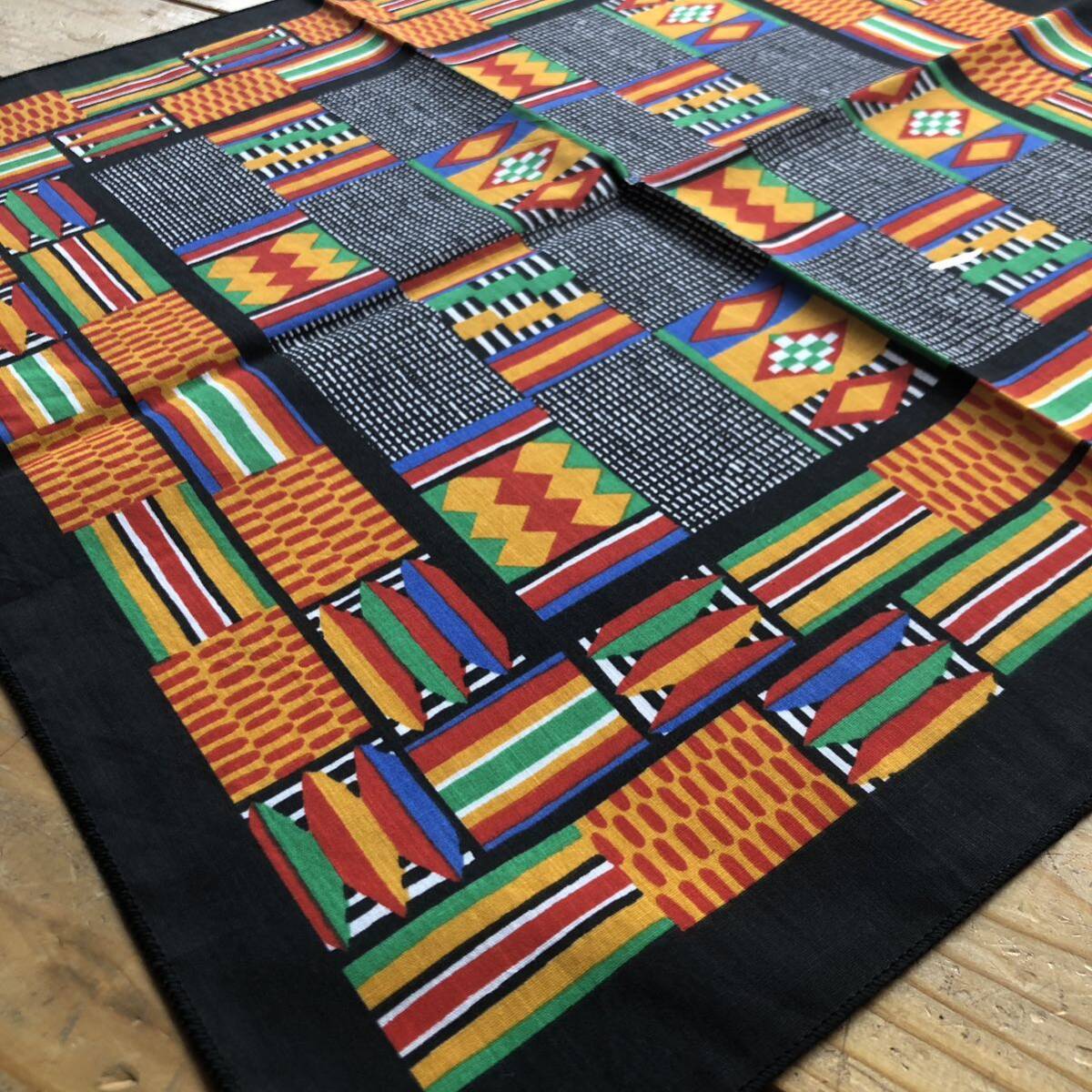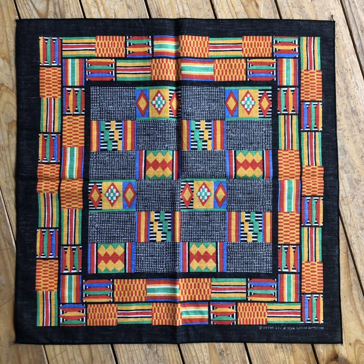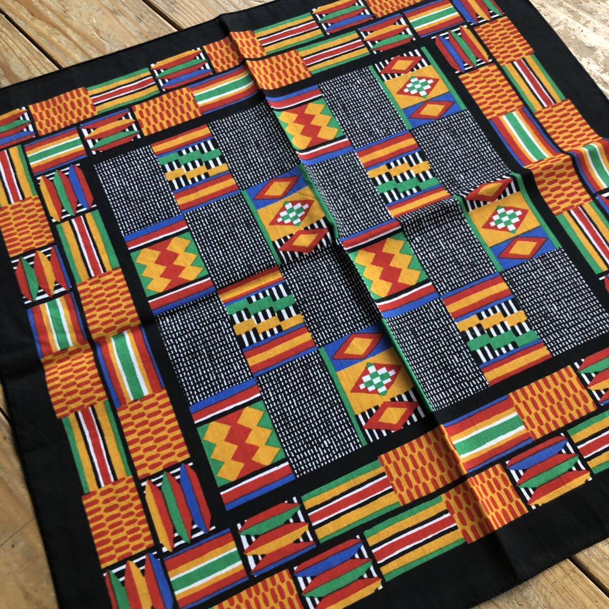 アメリカで購入したセカンドハンド(古着)の、 アフリカンプリント バンダナです。