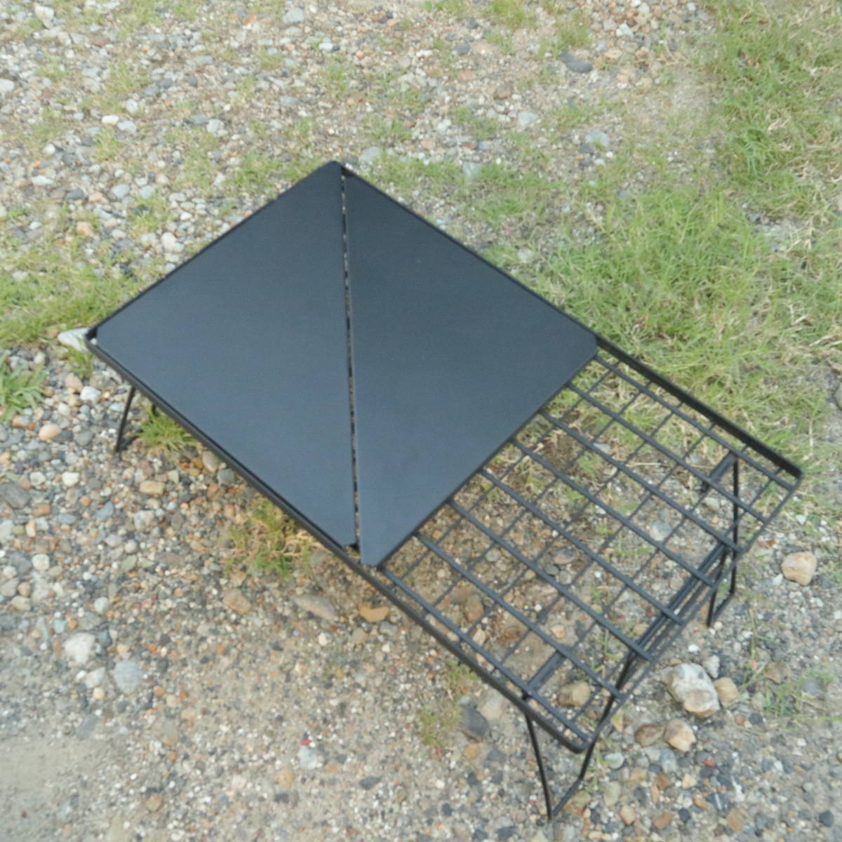 | 形状 三角天板 ×2枚セット 材質 スチール サイズ 高さ約24×底辺約48×約1.5(㎝) 重量 約0.4kg カラー ブラック(焼付塗装) 素材がスチールですのでマグネットタイプのLEDライトや100均等で売られているマグネットフックを好きな箇所へ取り付けることにより、ロストル等食器を引掛けて乾かすことも可能です。 (ステンレスは磁石が付きません) 当方ではラックを組んだ時、奥まったコーナーにマグネット式のランタンを設置して利用しております。 収納時フィールドラックに入れての収納も可能です。(8枚目参照) 当方にて出品しておりますフィールドラックでは写真8の様に収納可能であることを確認しております。 ※キャンピングムーンの様にフィールドラックのサイズが短い辺の長さが規格の幅がない実際にはないフィールドラックも一部あります。 (設置には問題ありません) 当方が推奨するフィールドラックのサイズは60×35(㎝)です。 写真に使用している設営時のフィールドラック及びフィールドラック用天板は別途出品しております。 ※こちらの商品は輸入品の為、検品はしておりますが細かい傷や汚れがある場合があります。 ※こちらの商品は当方の出品しているフィールドラックとの同梱も可能です。 ※ブリッジで使用される場合、重量物を載せる場合は変形等の恐れがありますのでご注意下さい。 ※商品の発送には商品の化粧箱に送り状を貼り付けての発送とさせて頂きます。 ※本製品上で熱源を使用すると天板が熱くなり火傷などの事故に繋がる恐れがありますのでご注意願います。 こちらの商品は送料無料です。 落札価格=お支払い価格となります。 当方が出品しているアウトドア・キャンプ用品の出品は纏めてこちらのリンクより御確認お願いします。 キャンプ・アウトドア用品総合リンク テント・タープ関係 陣幕・風防関係 フィールドラック・IGT関係 ランタン・照明関係 BBQ/ロストル/食器 暖房・薪ストーブ等 CB缶・OD缶用ガスホースライン関係 こちらの商品は送料無料です。 落札価格=お支払い価格となります。 当方の発送は全て国内発送保証付き・追跡ができる発送方法にて発送させて頂いております。 |