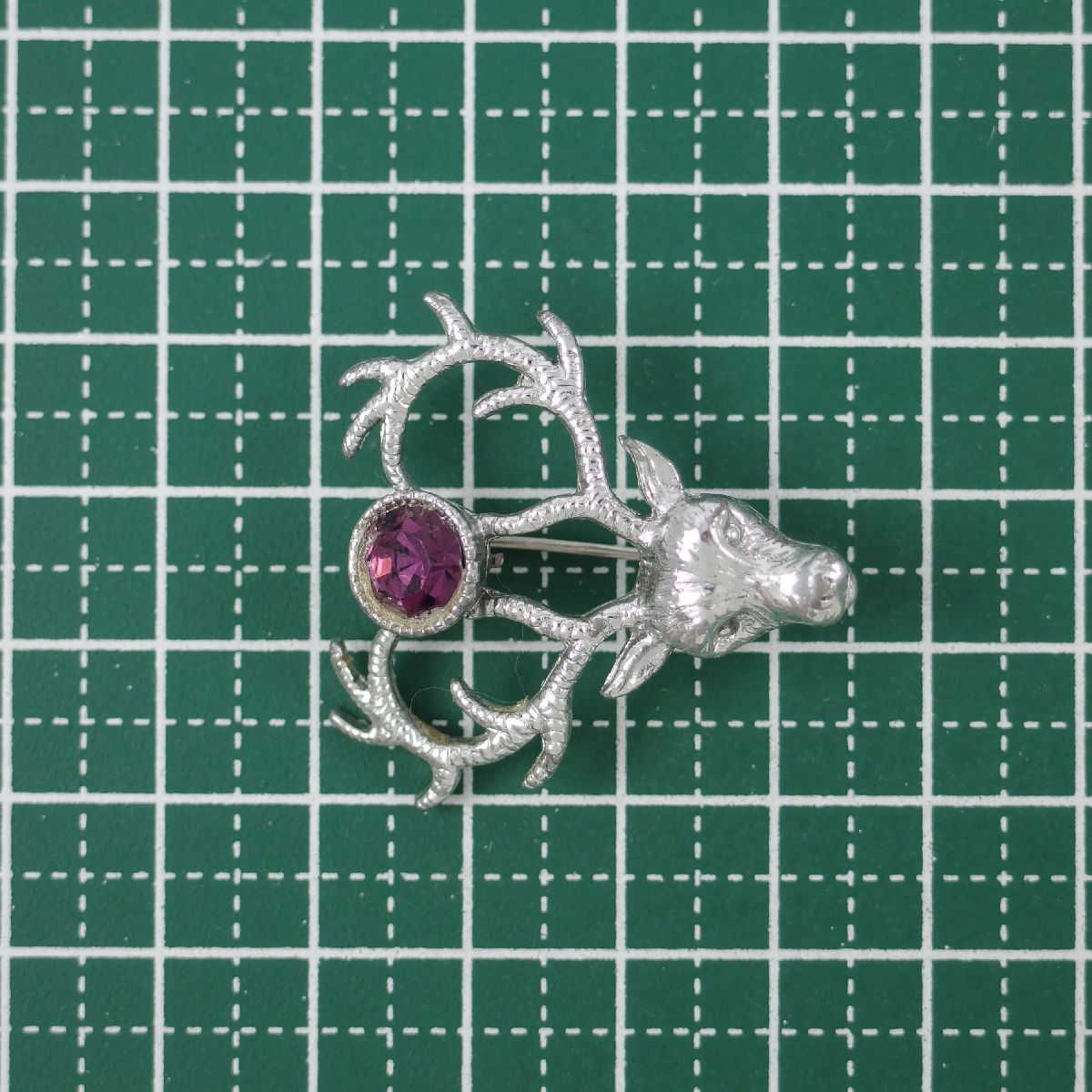 UK1719◆ 鹿の顔 アニマルモチーフ 動物 ケルト イギリス 英国 ヴァイキング ◆ ヴィンテージブローチ ◆