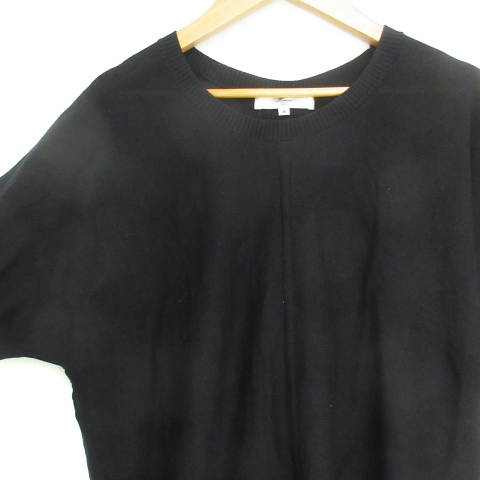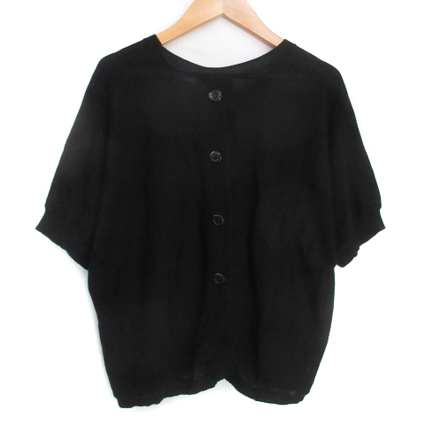 ハリス HARRISS ニット カットソー 半袖 ドルマンスリーブ クルーネック バックボタン 無地 36 黒 ブラック /FF31 レディース