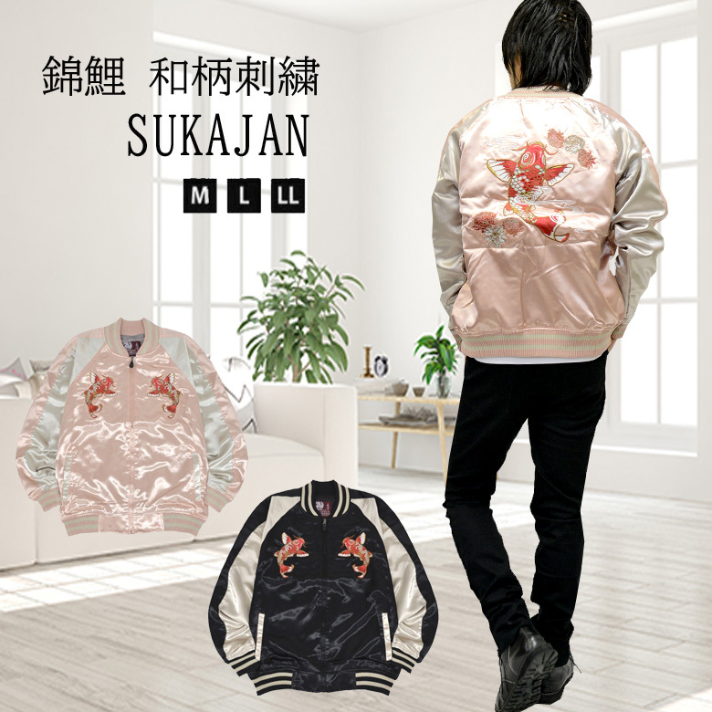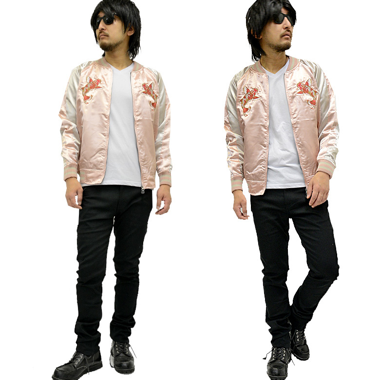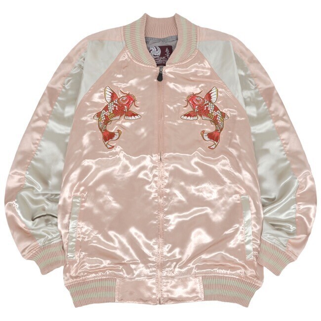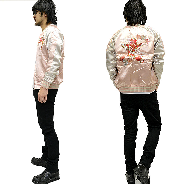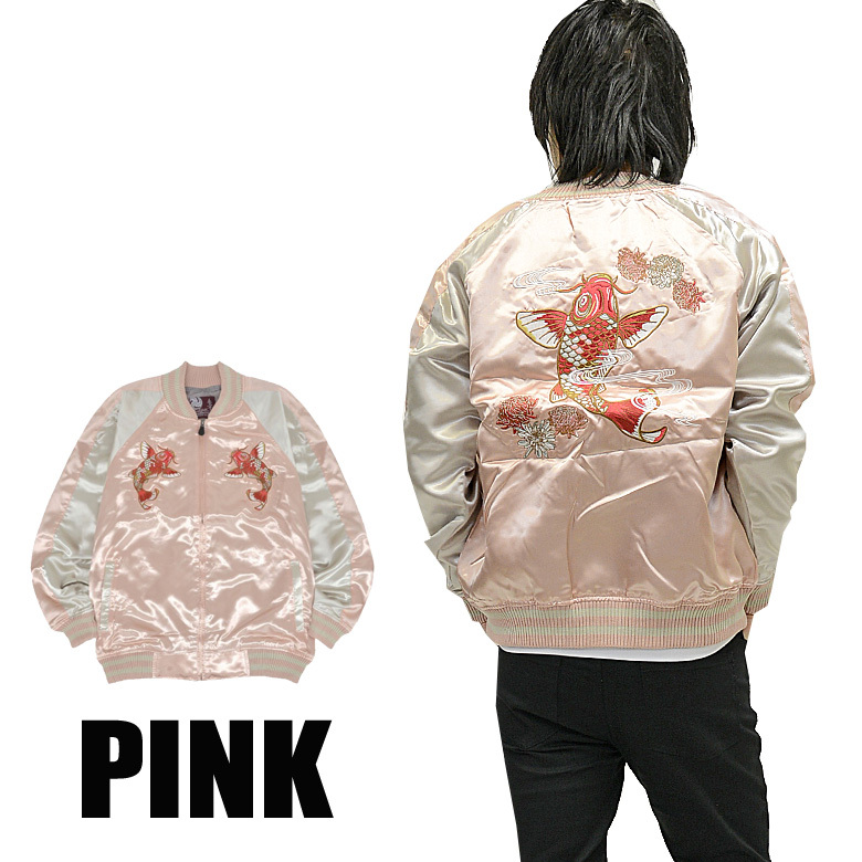 錦鯉 和柄刺繍 サテン スカジャン 本格 和柄刺繍 スカジャン 30-1481z JAPAN 新品 ピンク M