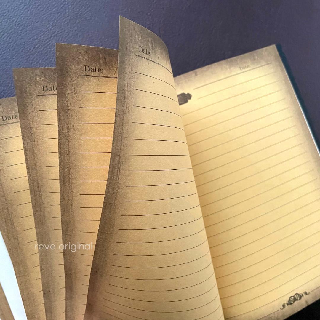 オフホワイトと、羊皮紙風なデザインの2種類の洋紙が、20ページ毎に交互に綴られ、気分やコンセプトに併せて、使い分けにも便利。
