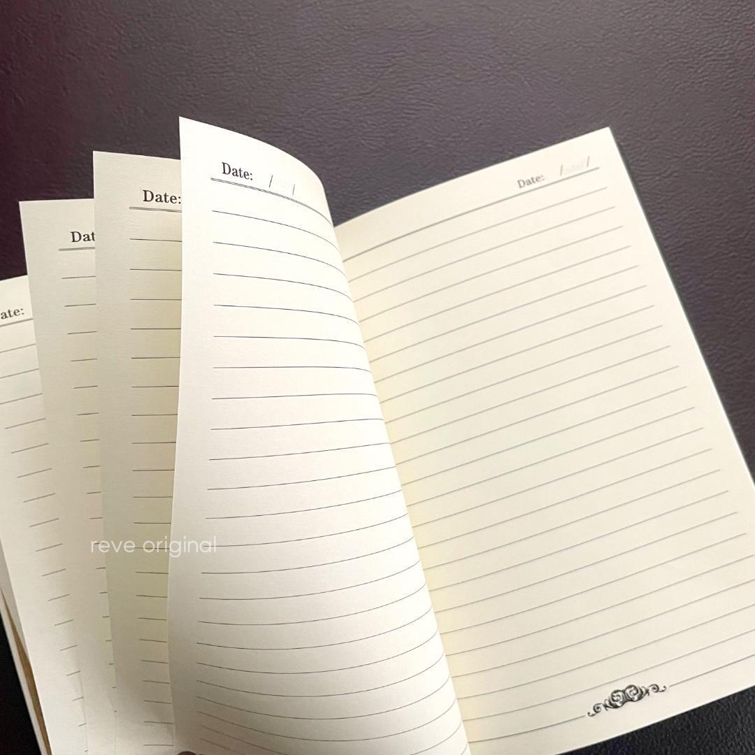 横書きの罫線タイプで使いやすく、日記帳、スケジュール帳、アルバム、お料理レシピ、家計簿、オリジナル小説、仕事用メモ、旅行の記録、名言集、アイデアノートなど、お好みに併せてお使いください。