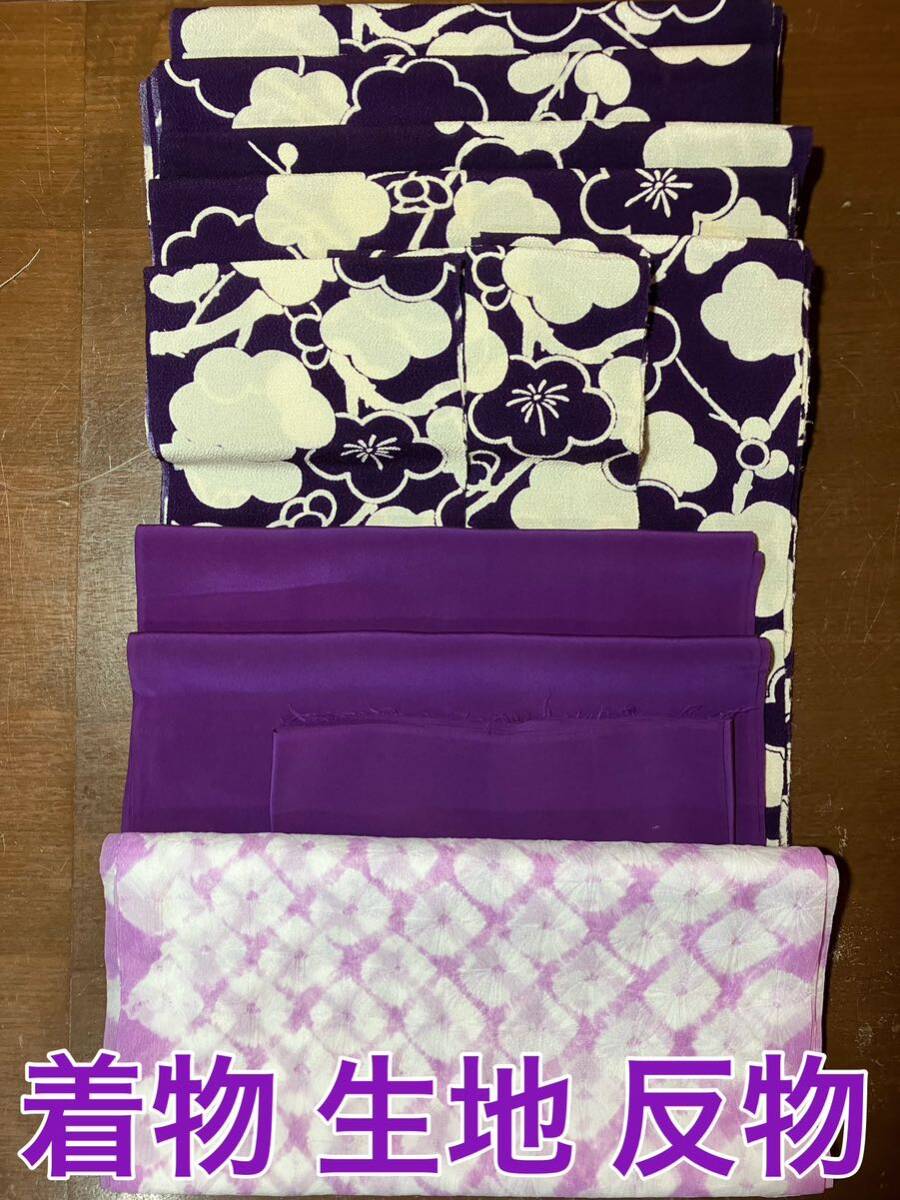 詳しくわかりませんが、画像3.4.5.6枚目の生地で着物を仕立てる前に裁断をしたまま保管されていた物のように思います。