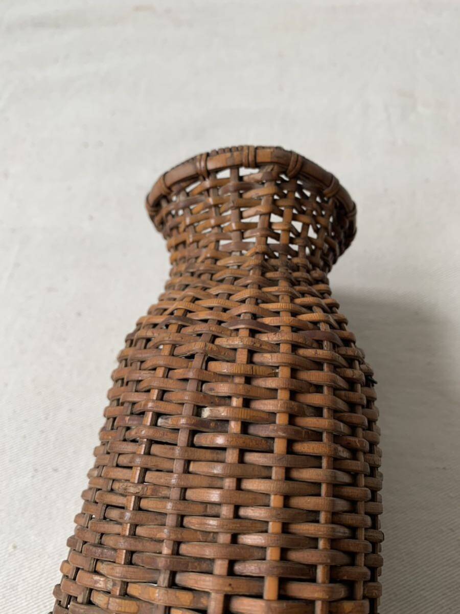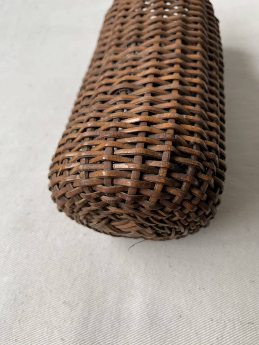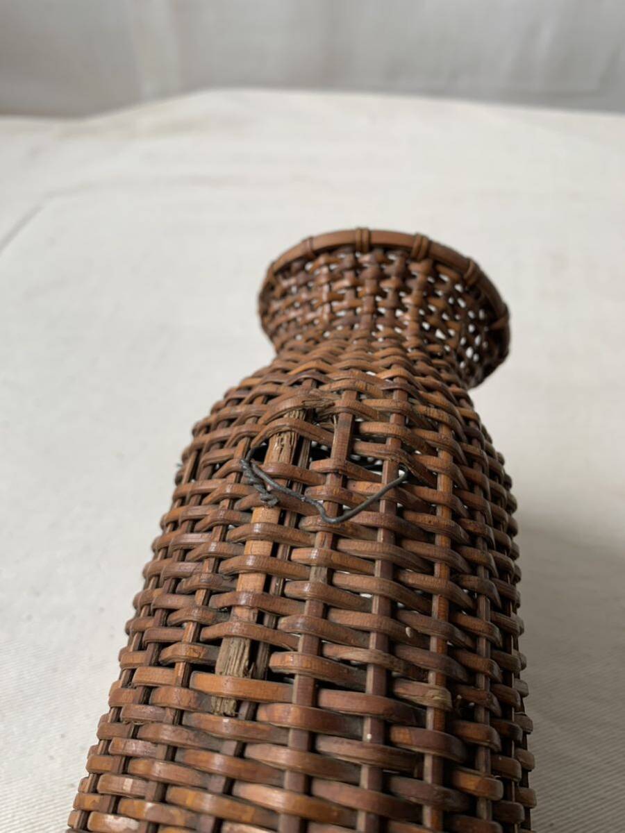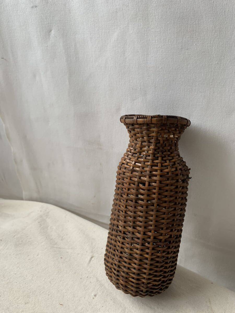 経年の雰囲気が素敵な竹編みカゴです。壁掛け出来る様に針金が付いています。花器としてお部屋のインテリアやお店のディスプレイに使って頂くと素敵だと思います。天然素材の味わいを楽しむ空間演出にいかがでしょう。